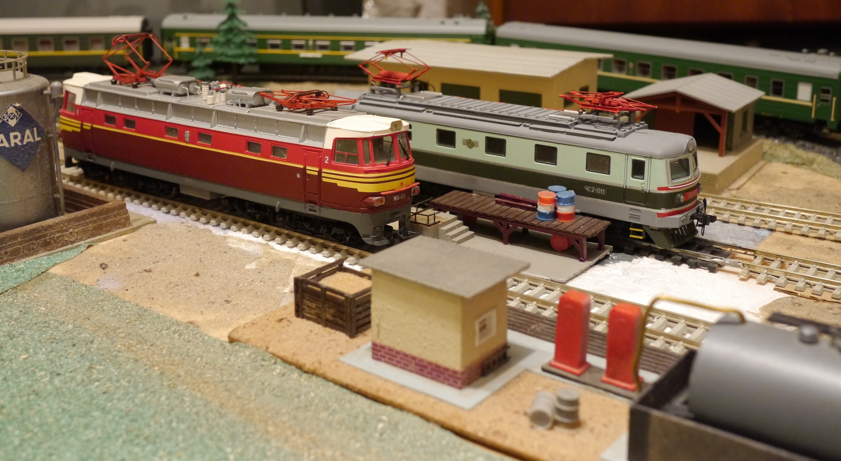 Во время посиделок у Юры (fonzenger) удалось сфотографировать рядом своего "чеха" и мелкосерийную модель от Трояна (надеюсь не перепутал автора :roll: ). Правда, модели отображают несколько разные прототипы - у меня ранний ЧС2, а у Юры поздний. Также пакуя в коробку свой лок, забыл прикрутить сделанный аккумуляторный ящик :?