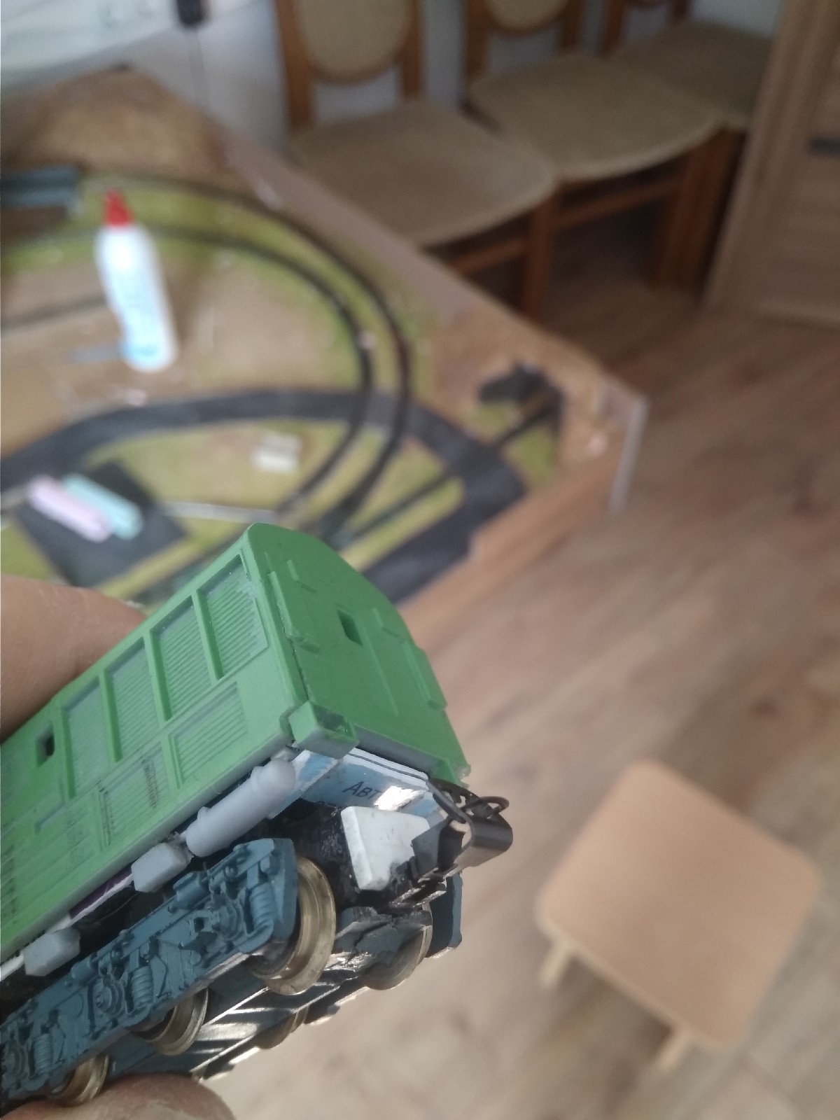 Трохи поприклеював підкузовне обладнання на раму 116-го. Зрізав надруковане фотополімером з пробного варіанту оригінального проекту та клеїв на БТТБшну. Ще треба трохи корекції. Також вклеїв одну шахту НЕМ, тест на поїздну роботу пройдений успішно.