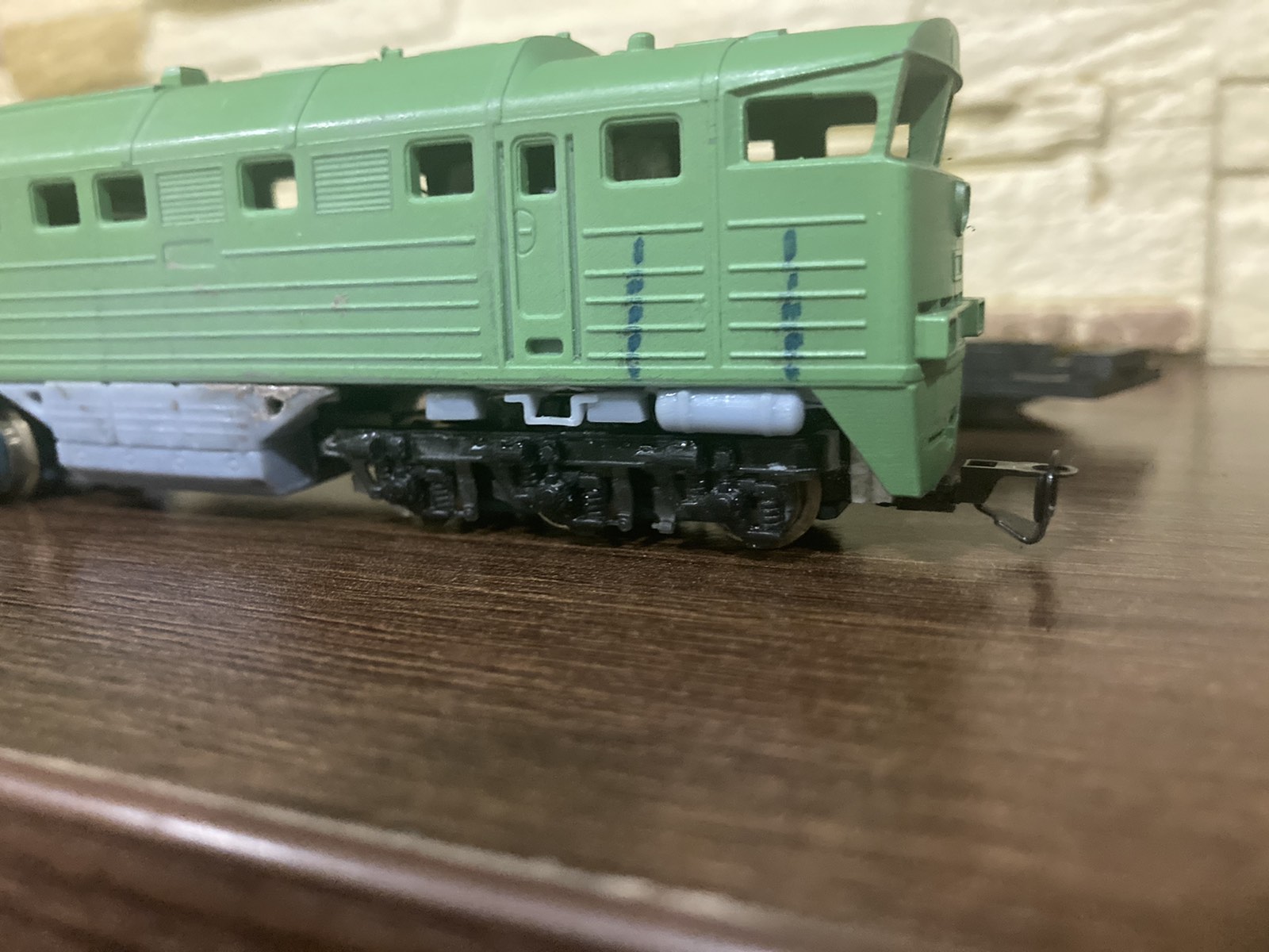 Глибока конверсія 130-го від БТТБ у 2ТЕ116. Поки лише перепил рами та примірка. Кузов та бак робив не я, матеріал - фотополімер. Кузов чорновий, у зеленому грунті.