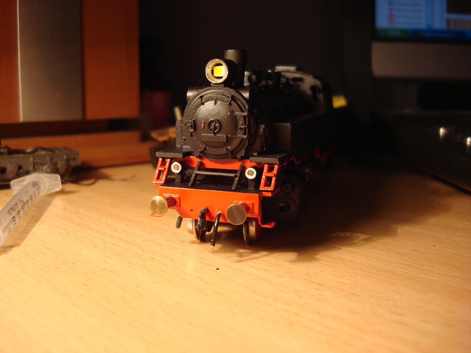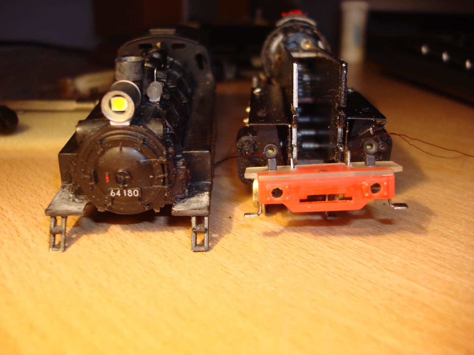 Їдем далі. Маневровый панцирь-нефтяник от Tyco... Рама - металл, пять полюсов двиг, верх пластик. Колесные оси на латунных вкладышах, серьезно так сделано... Лок из "папиной коллекции". На модели отсутствовала крышка дымовой коробки, вылил из смолы. Форма от 80-ки, фонарь тоже смола. И жутко мне не нравятся :cry: . Может у кого из форумчан есть подобные локи, чтобы сделать (отлить из смолы ) оригинальную дверцу (крышку) ?