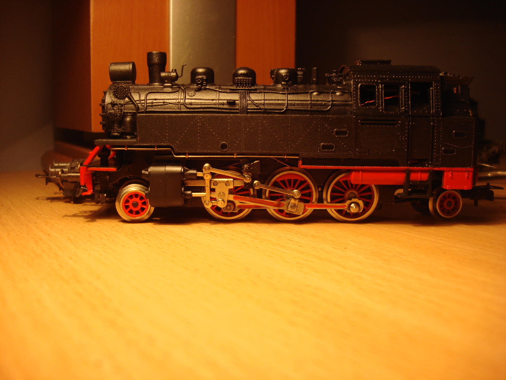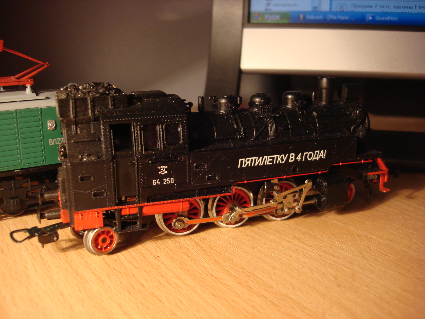 Їдем далі. Маневровый панцирь-нефтяник от Tyco... Рама - металл, пять полюсов двиг, верх пластик. Колесные оси на латунных вкладышах, серьезно так сделано... Лок из "папиной коллекции". На модели отсутствовала крышка дымовой коробки, вылил из смолы. Форма от 80-ки, фонарь тоже смола. И жутко мне не нравятся