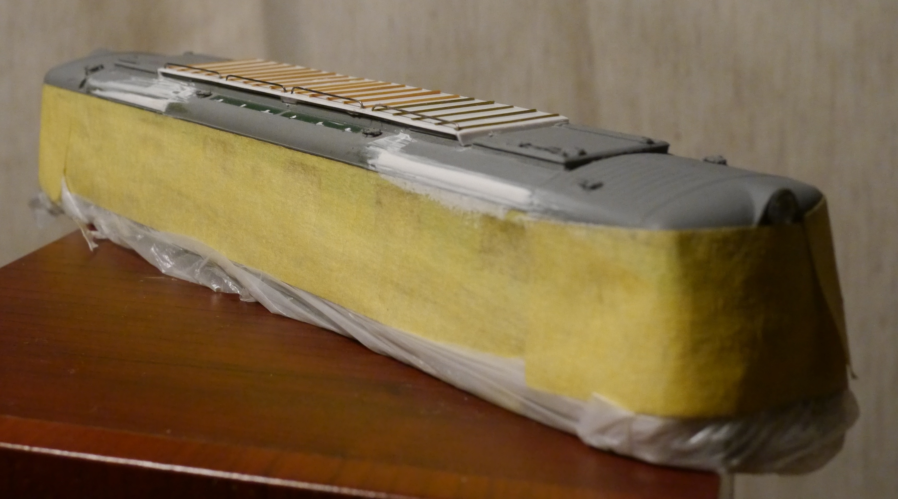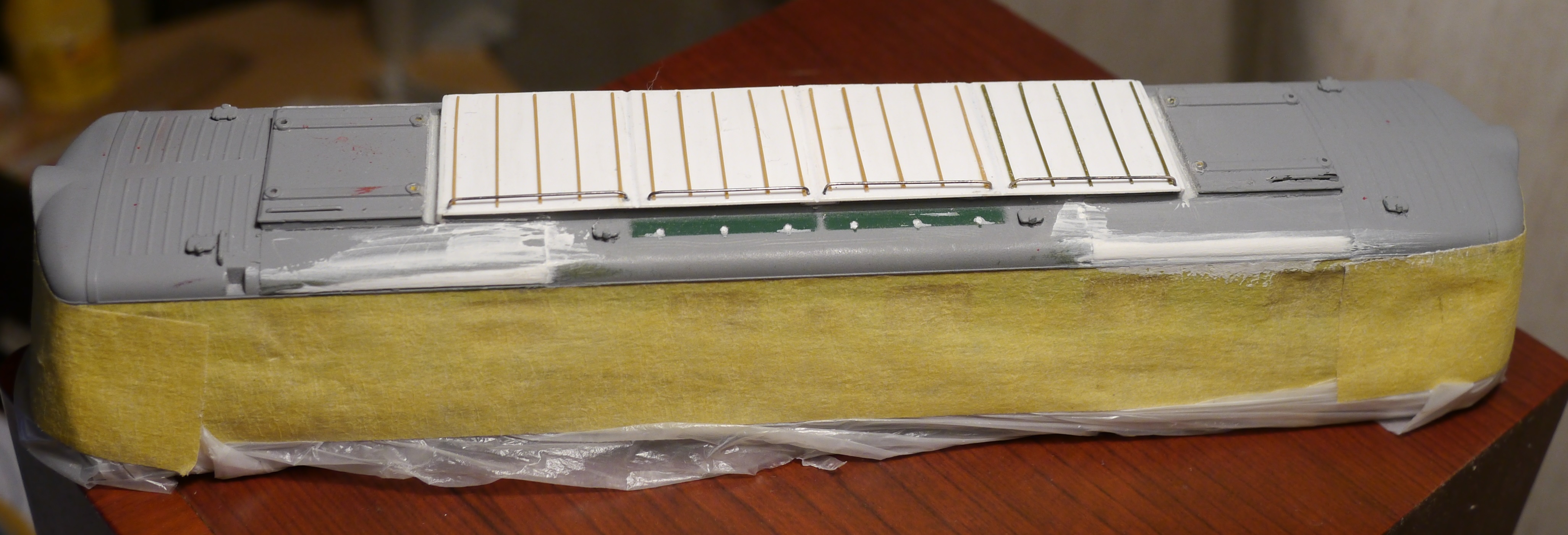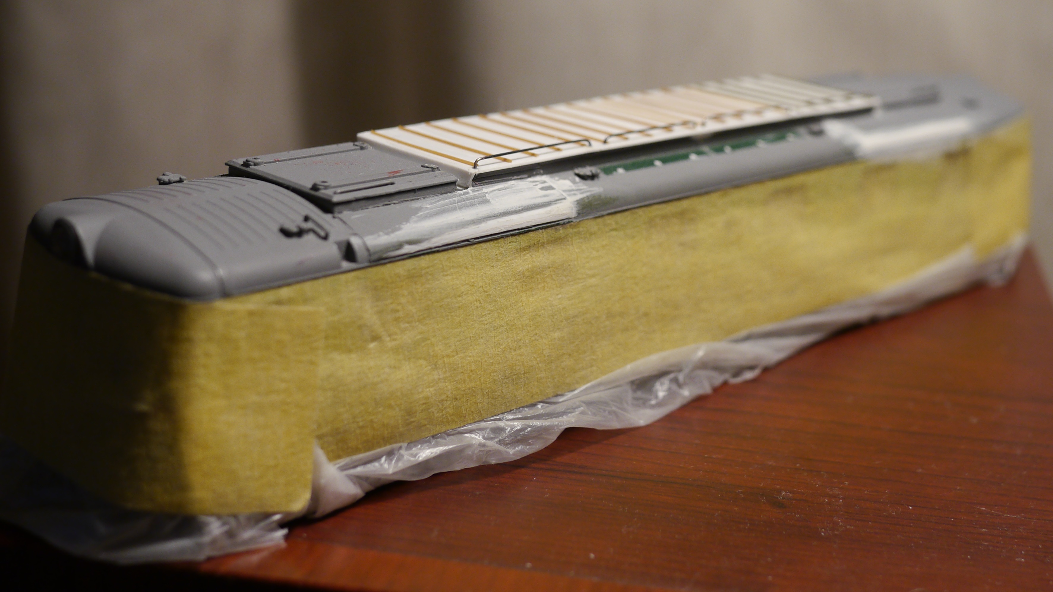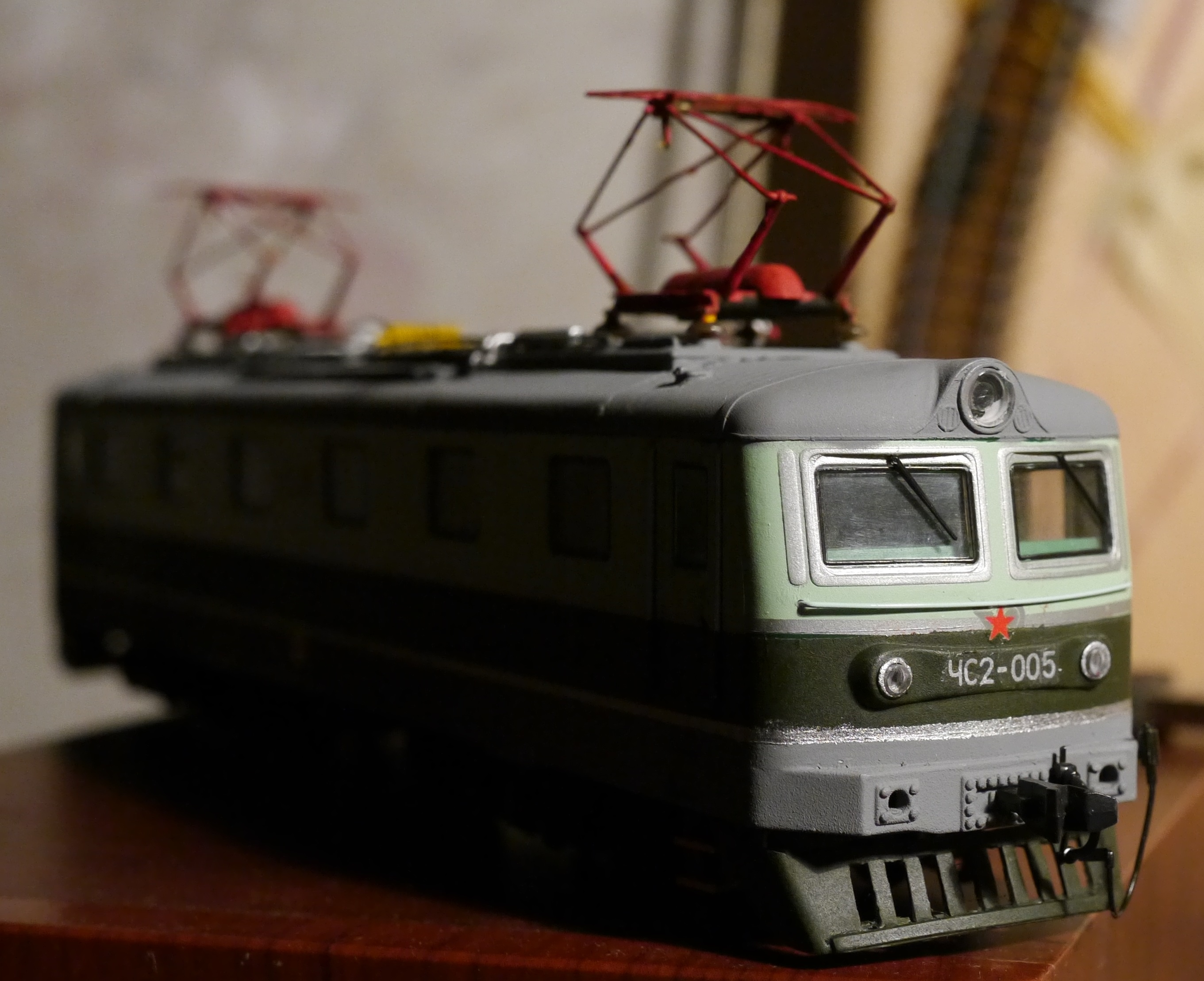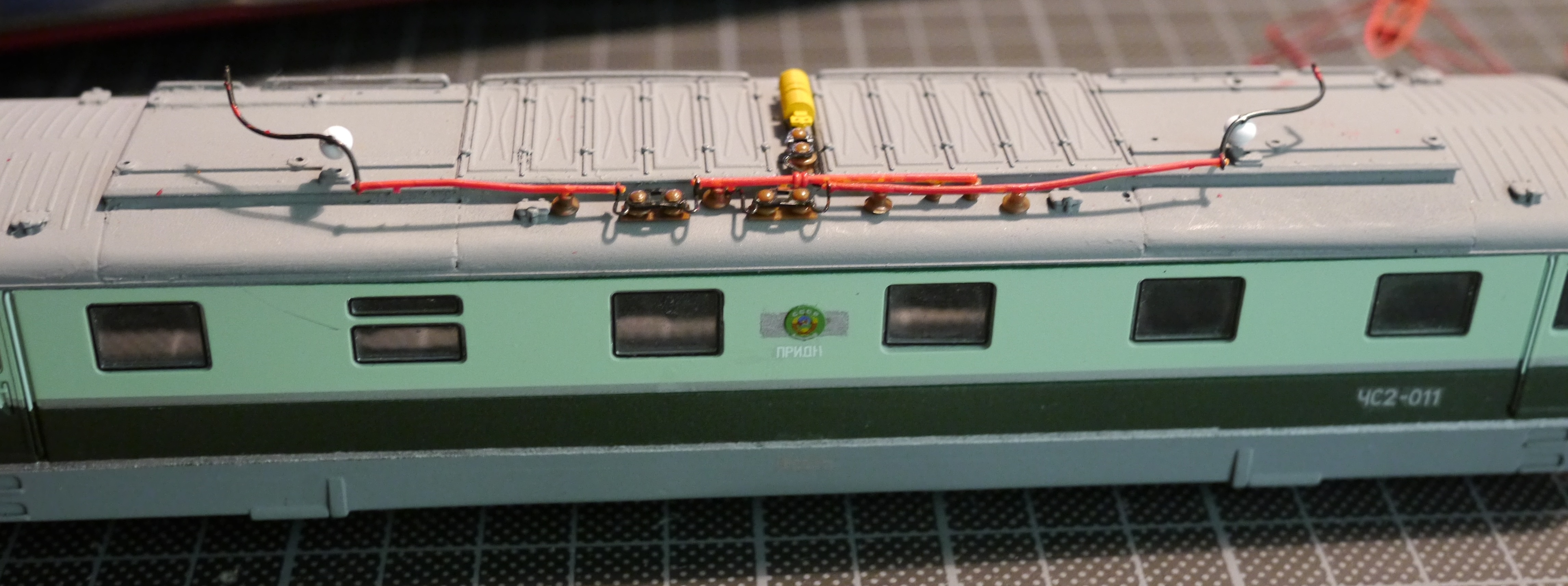Например, крыша у модели не та. У ранних ЧС2 (до 104-го номера) она тоже "лысая", но панели отличаются, расположение и крепление пантографов. Но пока мне не удалось найти чертеж или просто хорошие фото крыш ранних электровозов