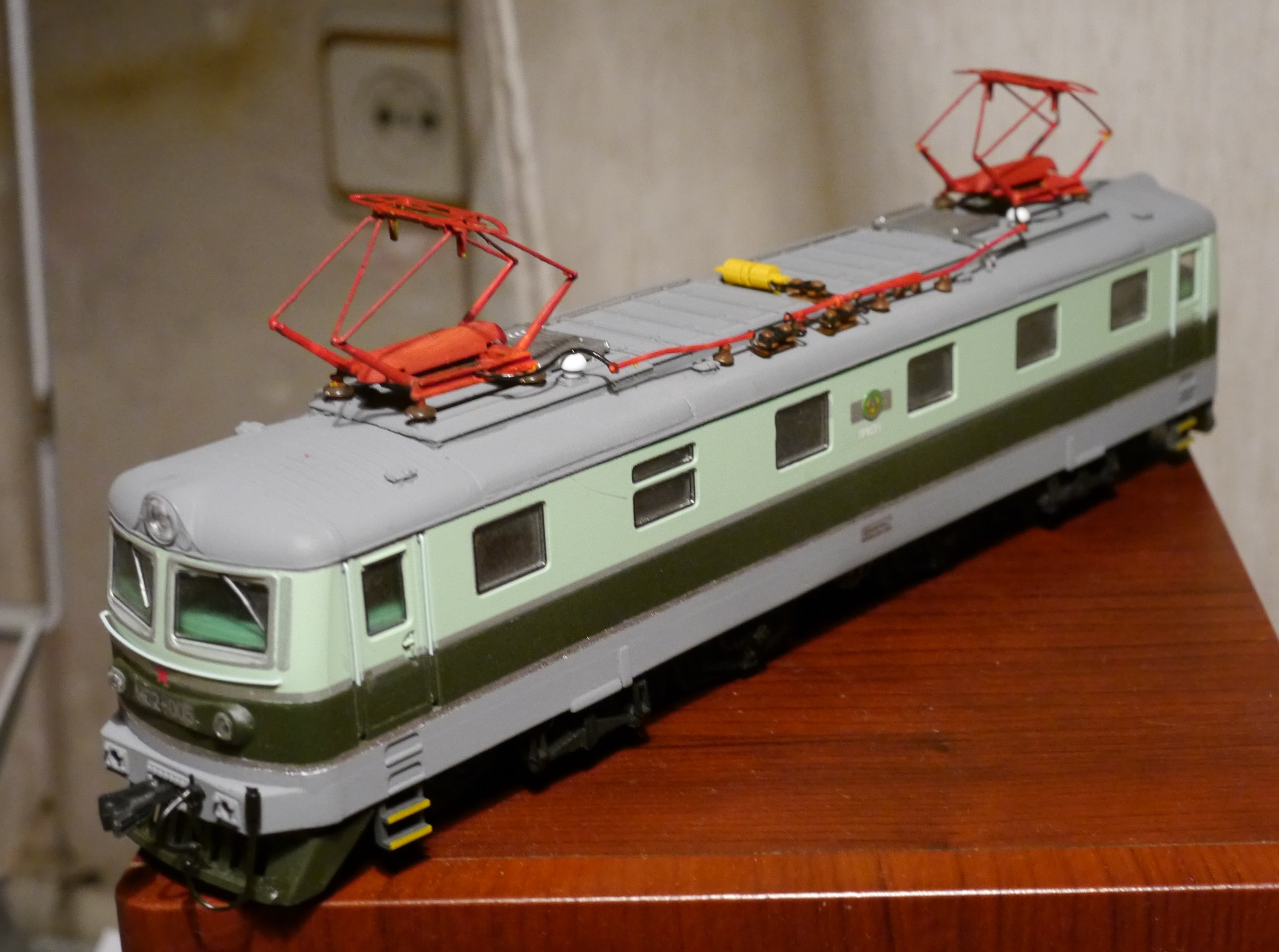 Нет, бро. Я не зря так со вторым молдингом заморачивался. Дело в том, что с завода электровозы приходили приблизительно в том окрасе, который попытался изобразить на своей модели. Есть еще цветной вариант, но подозреваю что раскрасили ее уже в наше время, потому я бы не ручался за оттенки. 3000-й электровоз для СССР: Конечно, в оттенки я не попал, но общую концепцию хотелось такую...Еще будешь красные полоски на морду домалевывать?