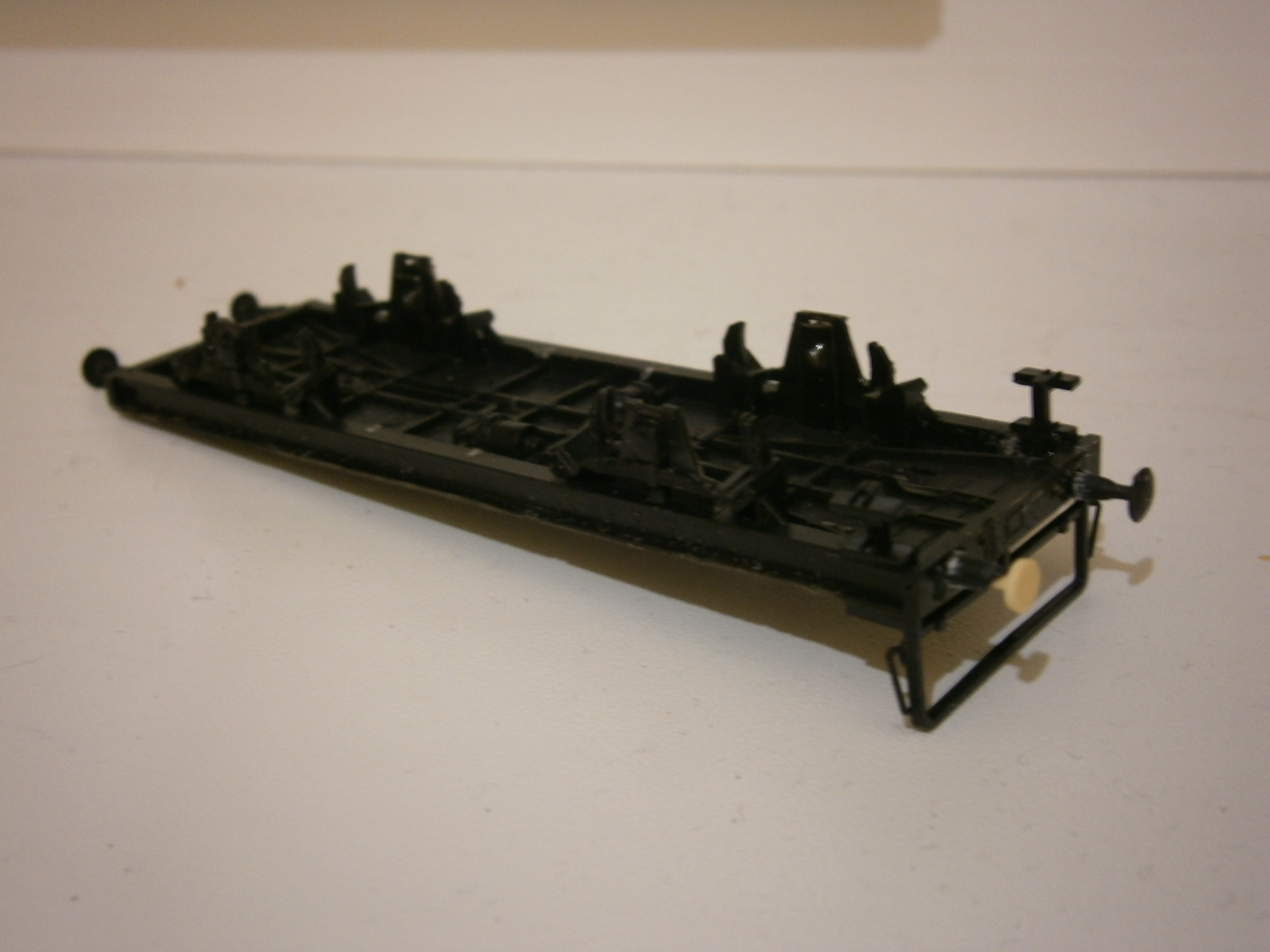 Мордашку вирішив робити як у оригінала, візки задув чорним матом (вони були коричневі і це мене дратувало :roll: ) Видалив рідні поручні і замінив на проволку. При цьому в двох місцях поцарапав корпус :x , але не біда. тренуватись треба ж на чомусь :P Загадив машинне відділення і троооошки саму модель ( не ризикнув її пачкати більше, бо не маю досвіду :oops: ) Але планую ще попробувати.