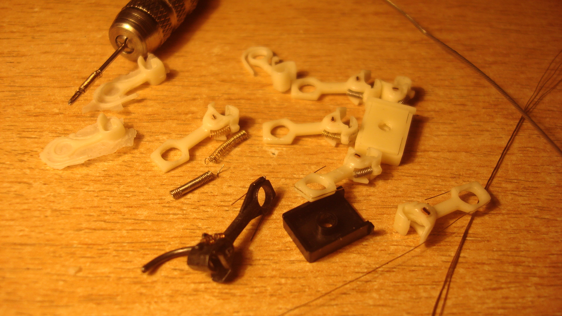 Еще на рынках у железячников есть проволока из пружинной стали. Но, как обычно, нужного диаметра нет. Сейчас мучаюсь - из 0,3 делаю 0,15-0,2 наждачкой для навивки пружин для токоприемника.