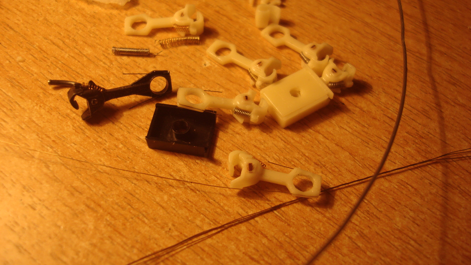 Без него в моем деле - никак. Кроме локомотивов есть и вагоны, которые имеют повреждения и недостатки в данном сегменте. Если с переливом пришлось более или менее просто, то задача с пружинками решалась оч непросто... И вот на днях случайно нахоботил трос в оплетке, такие встречаются на пломбах разных счетчиков или бижутерии. И все поехало
