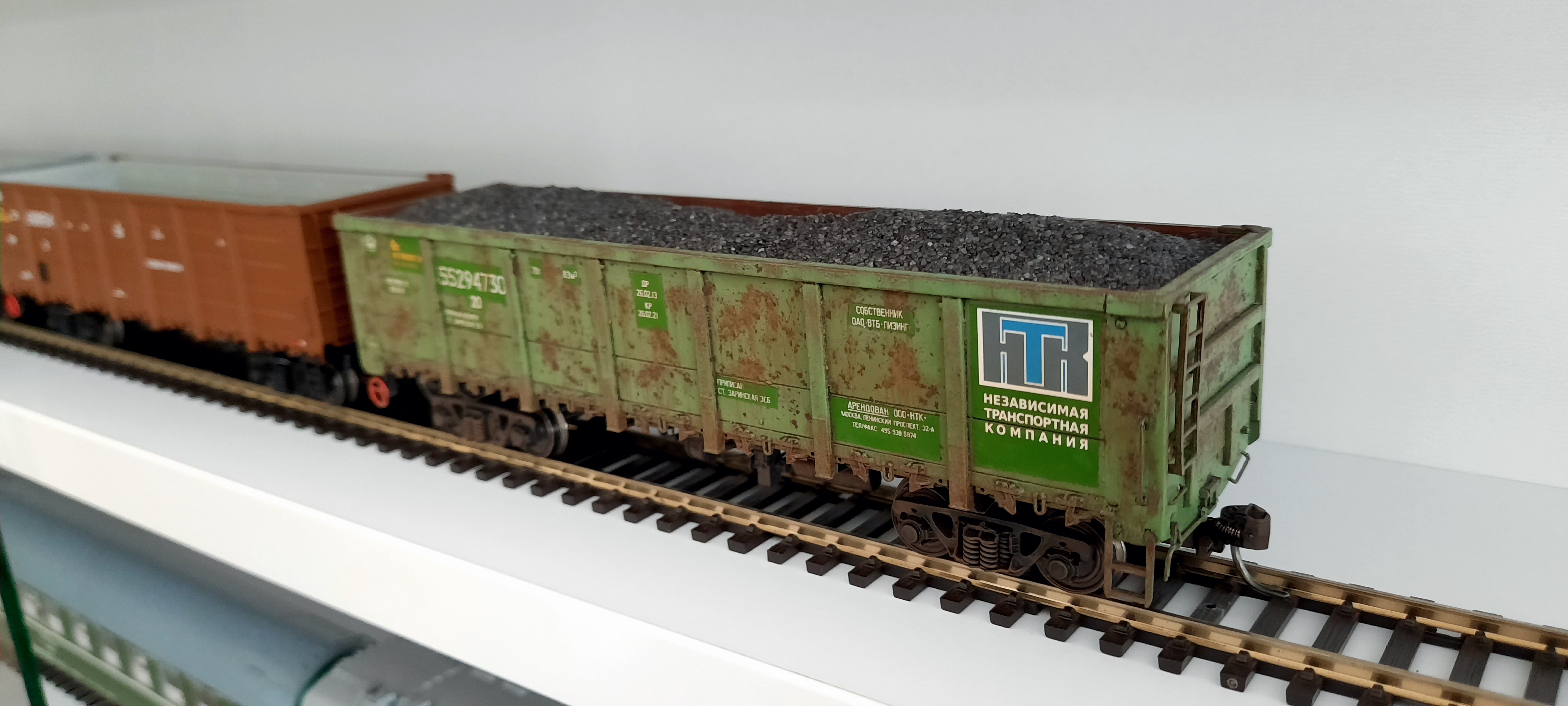Лёнь, есть одно соображение. Мне кажется, что логотип НТК лишний. Обновить надписи на свежей краске - это да, а вот лого вряд ли рисовали на старом корче. Оно появилось там с завода, и должно быть покоцаным и ржавым как остальной вагон.
