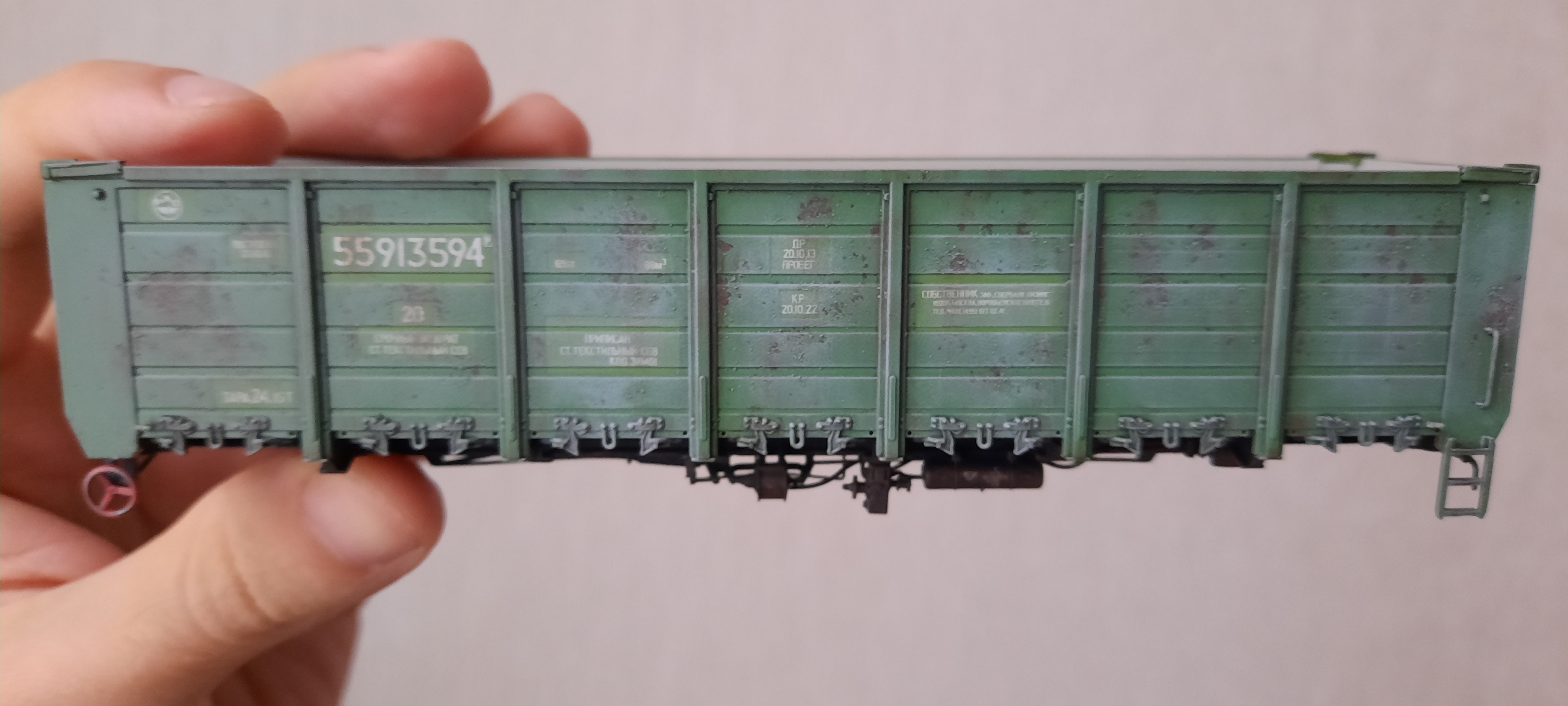 Не сочти за придирку, работа великолепная. Но на следующих вагонах я бы закрасил/состарил логотипы.