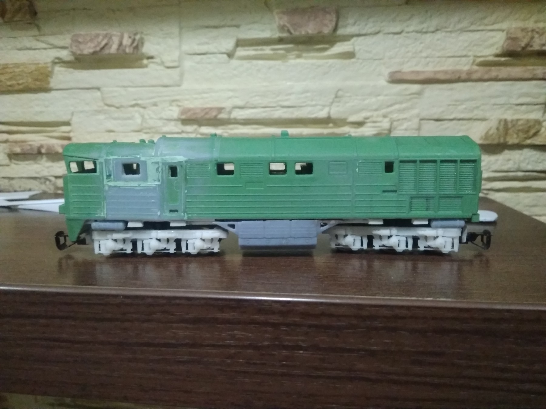 Пофарбував. Ще декілька дрібниць додати треба. Вибачте за якість фото, завтра постараюсь кращі зробити. Є трохи косяків, цей тепловоз це по суті бета-версія та проба пера.