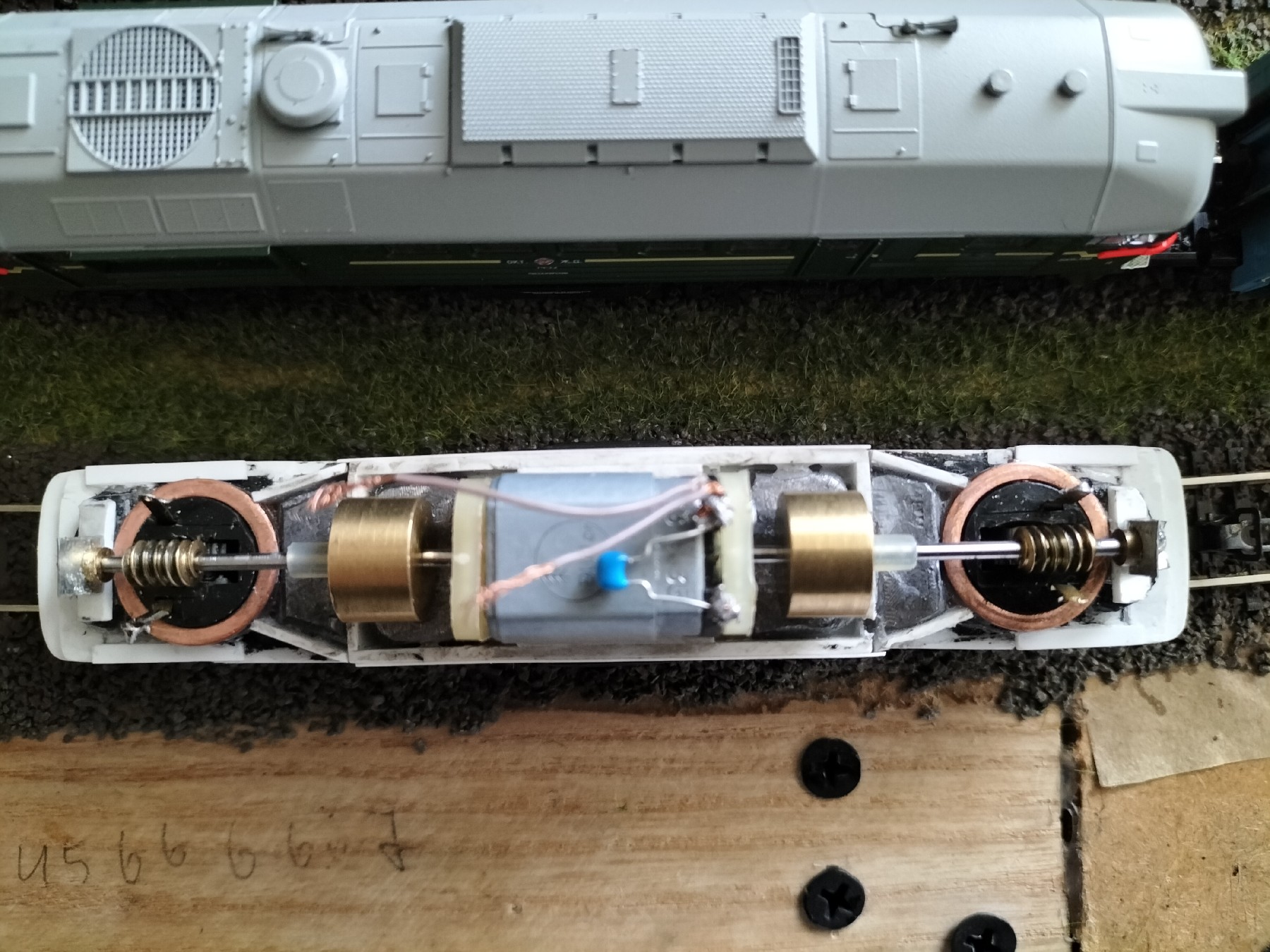 Невеликий відступ про "Пересвет" - багато про нього чув, в основному нехорошого. Моє враження від цього "бренда" загалом підтверджує це - моделі дико криві в плані деталізації та пропорцій, зокрема це видно на ТЕП10, який є зменшеною копією "Счетмашовських" дров. По ТЕ3 не дуже придивлявся, але як уже згадав, у нього відсутня деталізація рами. В технічному плані - опустимо "чуму", це факт буття. На ТЕП10 у некатаних редукторах шестерні на двох осях сидять криво, виляють, у ТЕ3 латунні колеса окислились до чорного, довго і нудно віддирав, плюс довелося приклеювати їх до осей бо відпали. Кріплення кришок візків ненадійні та схильні до поломок.