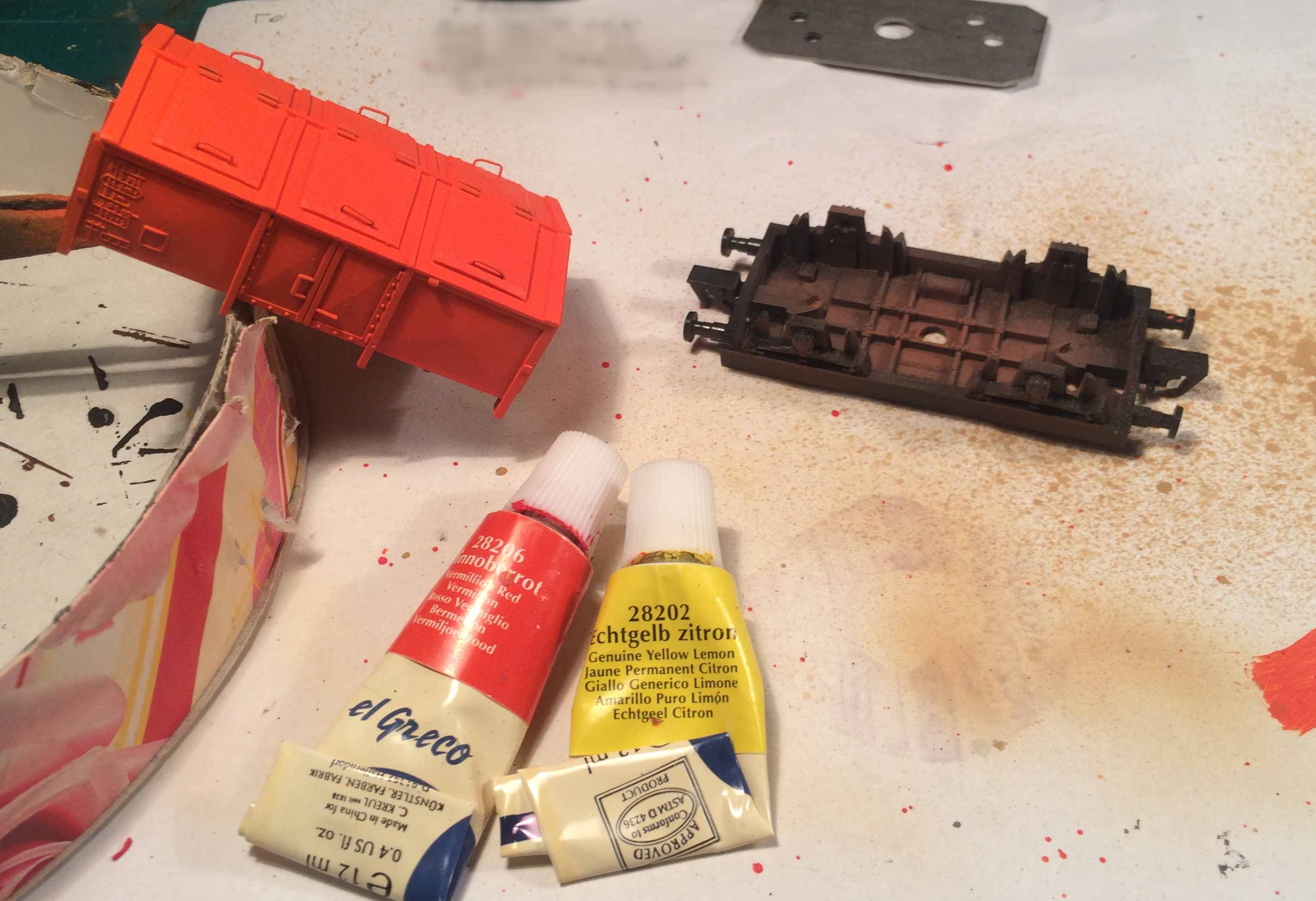 трудочасы нивелируют подобные запилы в ноль.Поэтому я их просто списал в мусор. Далее уже пошло проще.Быстро нарастил борта и бункер с люками. Шлифонул и закрасил.Вот почему то он мне виделся морковного цвета.Пришлось мешать краски. Подсохнет и продолжение будет.