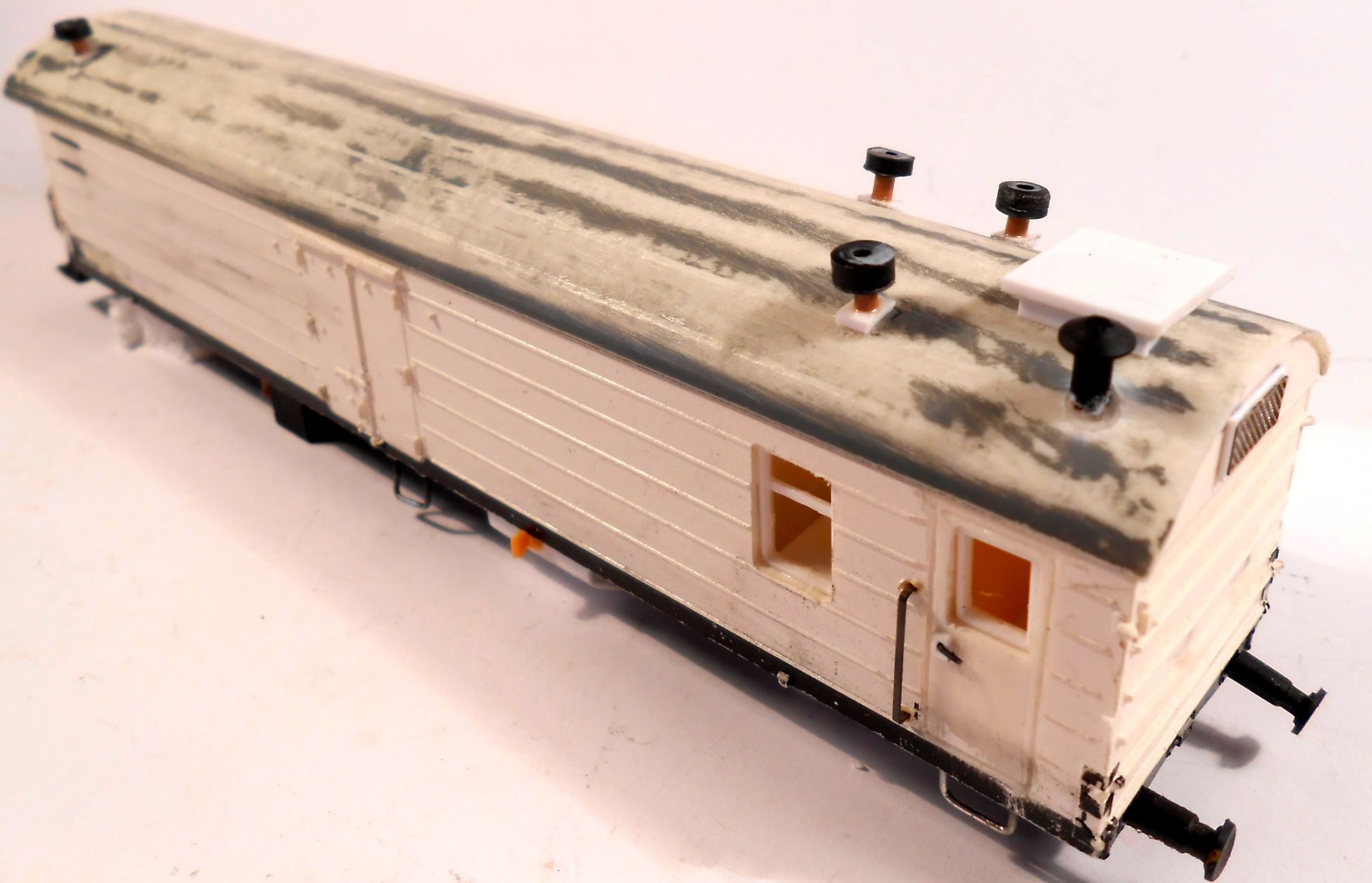 Если делать более похожую конверсию АРВ именно на базе вагона, взятого Денисом, то надо обрезать тормозную будку и глухую торцевую стенку.