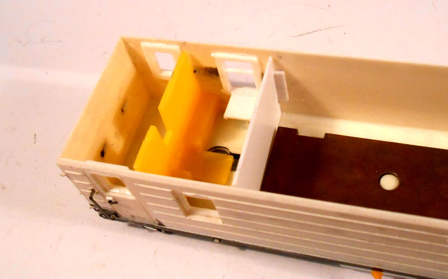 А к оставшемуся срезу надо будет наращивать машинное отделение. Линия отреза, кстати, выходит точно на левый косяк двери, если смотреть по фотографии прототипа в начале этого поста.
