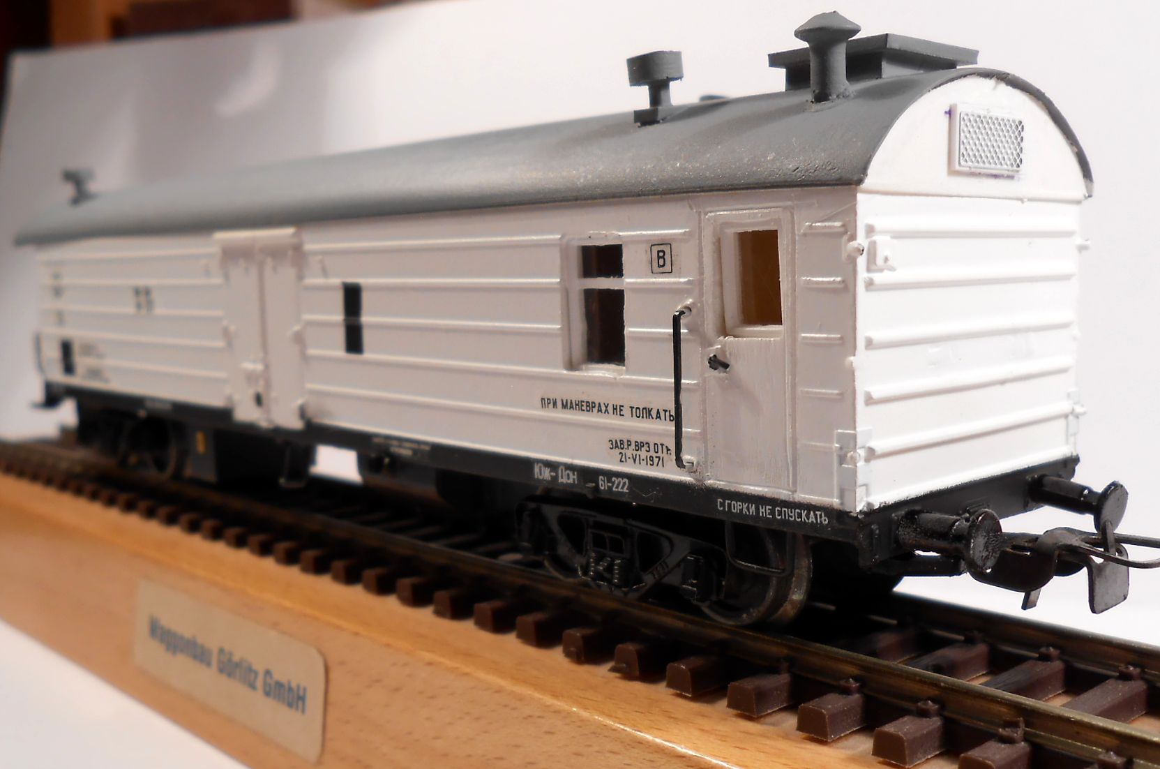 Если делать купе и машинное отделение на месте тормозной будки, то дверь грузового отсека будет размещена неправильно. Получится примерно там, где на фотографии прототипа находится некая доска объявлений... :? Но ежели по мотивам, то наверное допустимо.