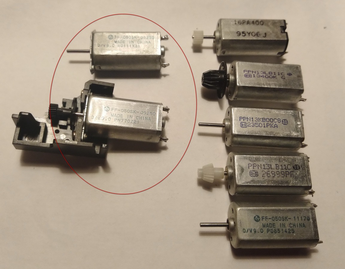 Изначально планировал установку упомянутого FF-050SK-09250, но единственный, имевшийся в наличии, оказался из числа давно отбракованных и просто не был своевременно выброшен. Далее последовала разборка пяти DVD приводов и только в пятом обнаружился похожий двигатель. Но похож он только типоразмером...