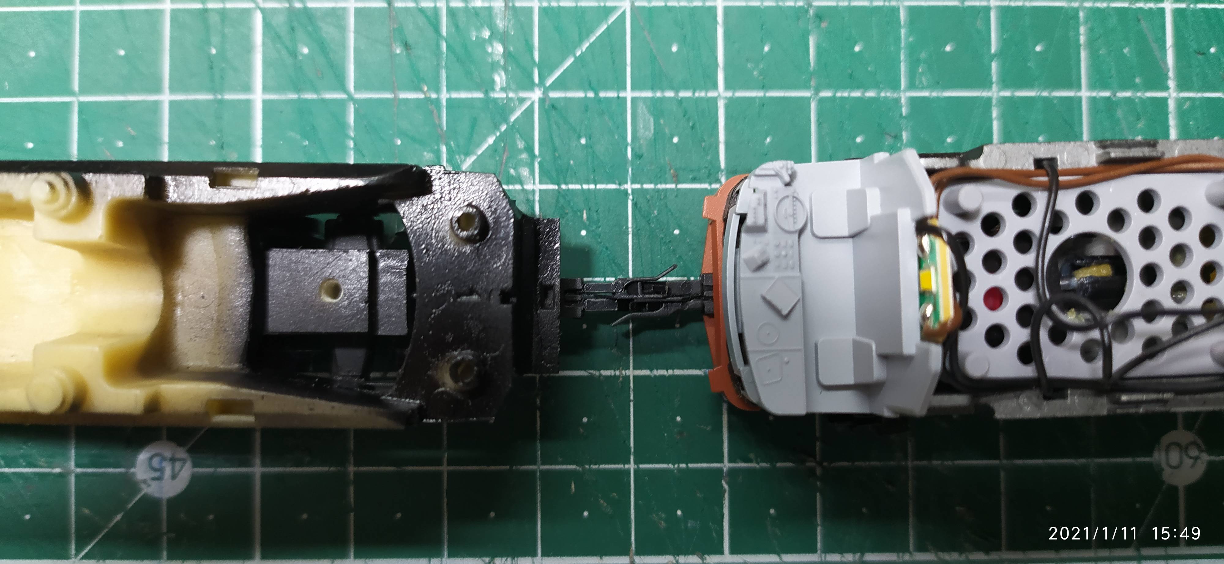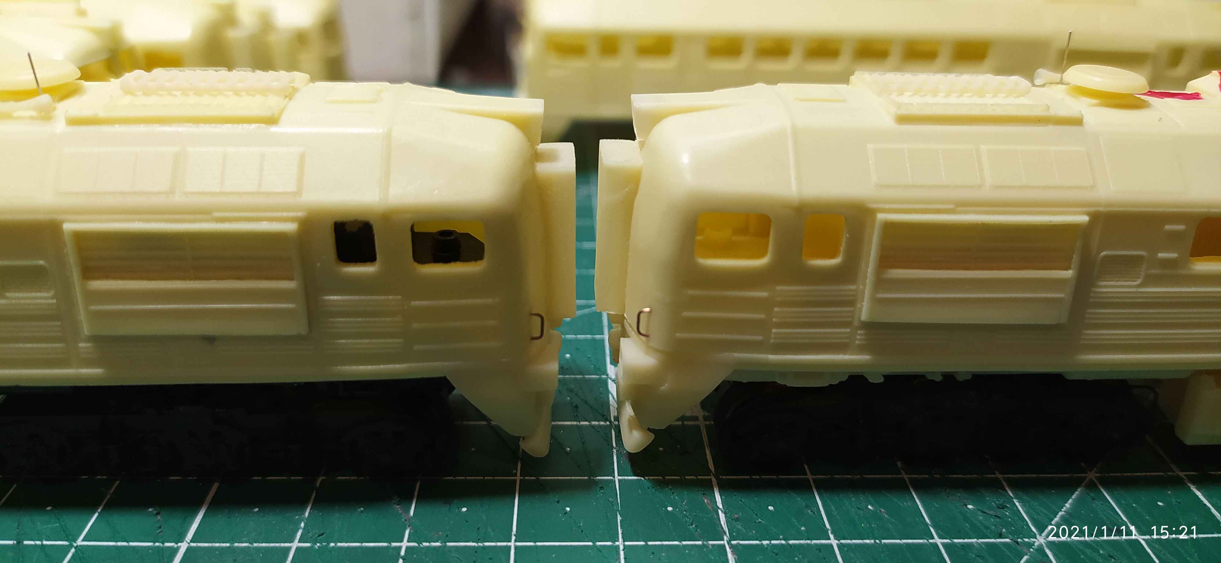 После покраски обязательно выложу, я пока учусь. У меня ещё вопрос стоит по поводу имитации СА-3, думаю её установить в голову немоторной секции, а между секциями так и оставить, для возможности катать моторную в одиночку. Исходя из этого регулируемый метельник можно будет не пилить под шахту сцепки, а у не регулируемого заделать эту дырень, так хоть одна голова будет иметь более правдоподобный вид.