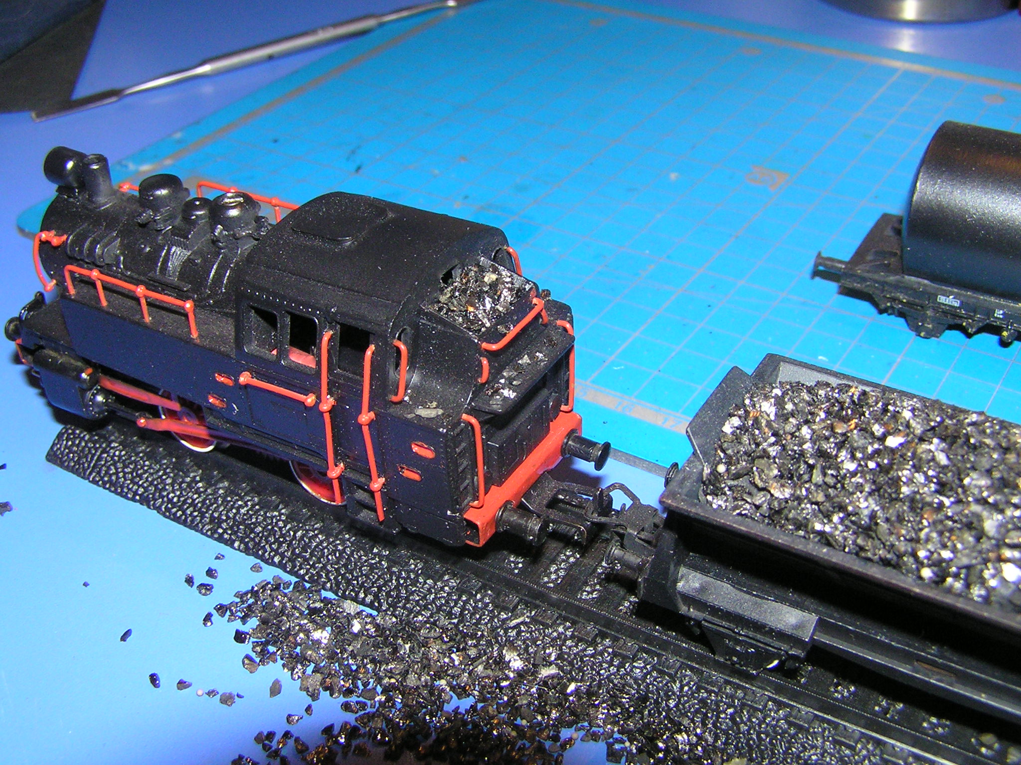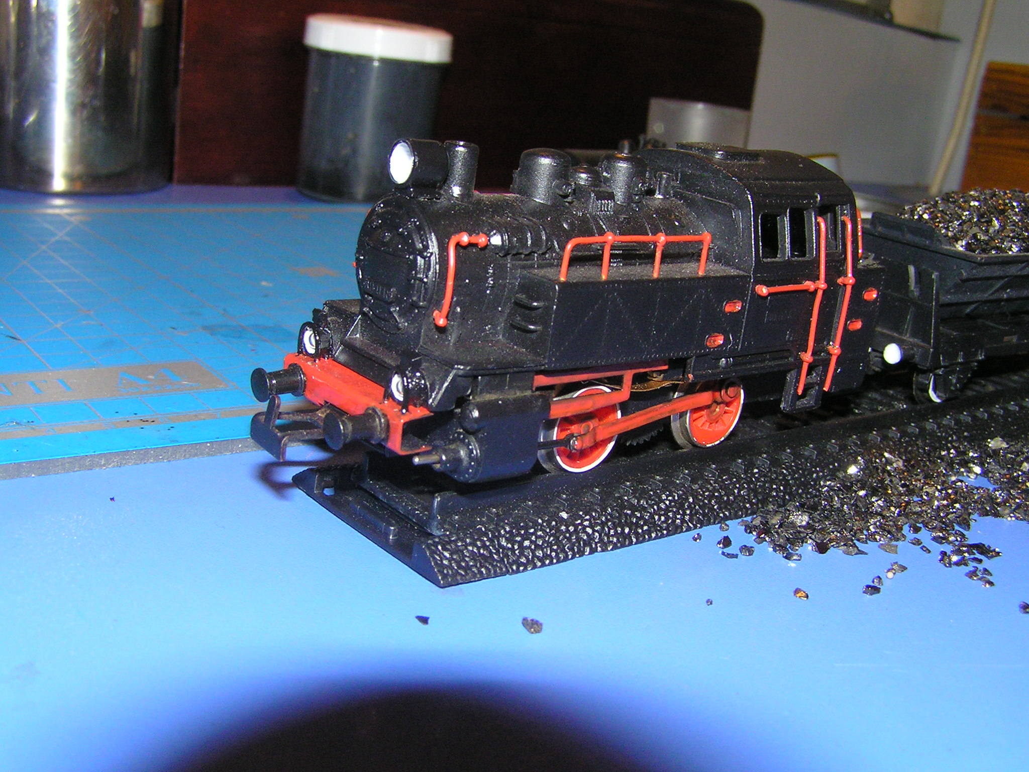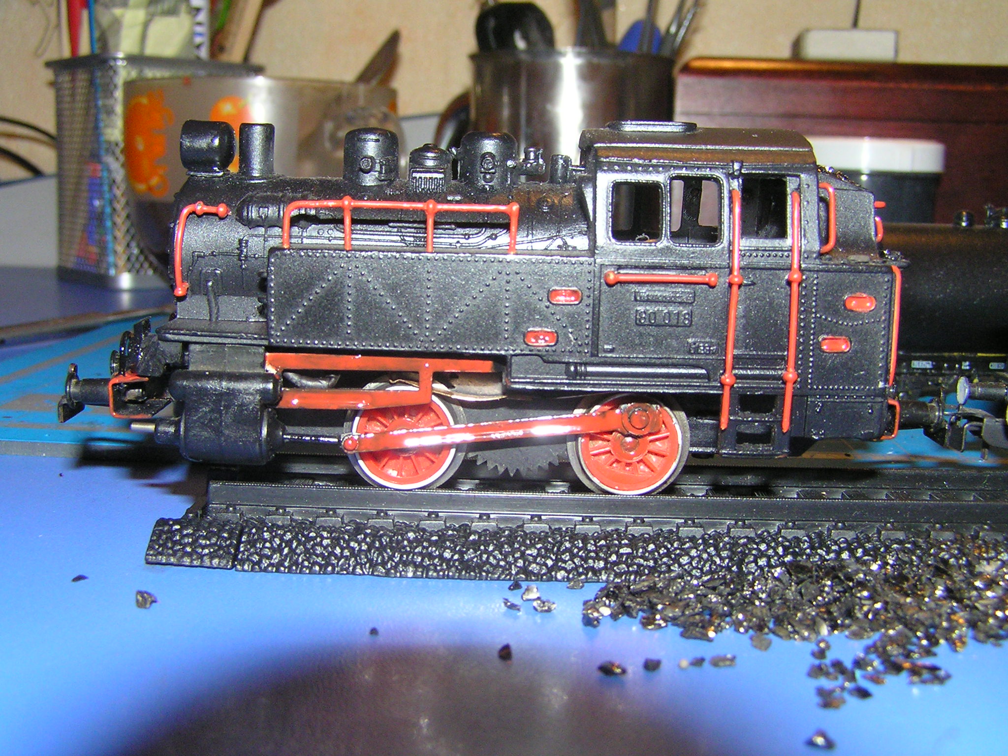 не так бросалось бы в глаза.Оградка на водяном баке немного лишняя.На будке паровоза