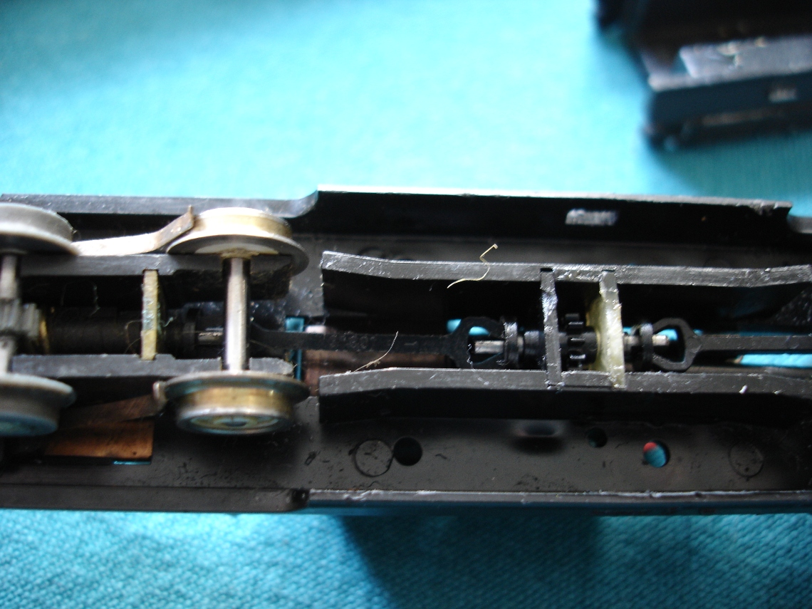 Несмотря на скудность иллюстраций, попробую описать ремоторизацию 2ТЭ116 на ходовке БТТБ-шного 130-го. Сама ходовка чуть больше, чем надо, но вполне подошла для модели: внешне не видно вообще. Но разговор не о том. Благодаря высоте кузова удалось впихнуть туда моторчик от пиковского Тауруса с платой под "цифру". Из-за большего размера пришлось поставить двигатель немного под углом, что оказалось совершенно не критично для шестеренок. Переходник между валом двигателя и валом с шестеренкой подобран из соответствующих по диаметру стержня от ручки и палочки от конфеты. Думаю, тут каждому стоит подбирать индивидуально, потому что у каждого эти трубки разные.