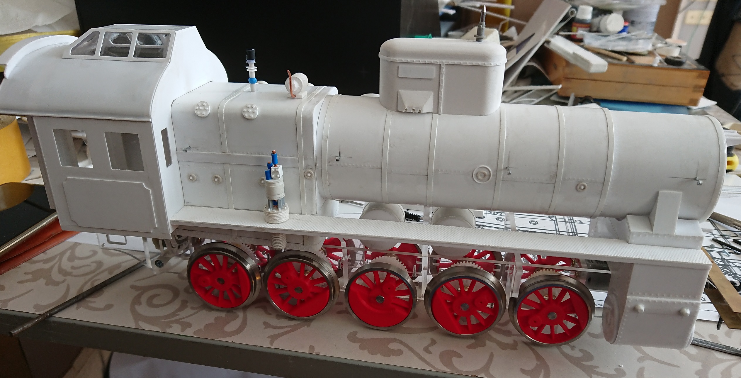 На моделях использовали работающие буфера и орудия выточенные из латуни, колесные реборды для паровоза и тендера - нержавейка. И все это собственного производства. Все остальные элементы в основном полистирол, хотя изначально была задумка выполнить весь ПС из латуни путем разработки фототравления, но от этой технологии пришлось отказаться по ряду весомых причин: отсутствие времени и бюджет.