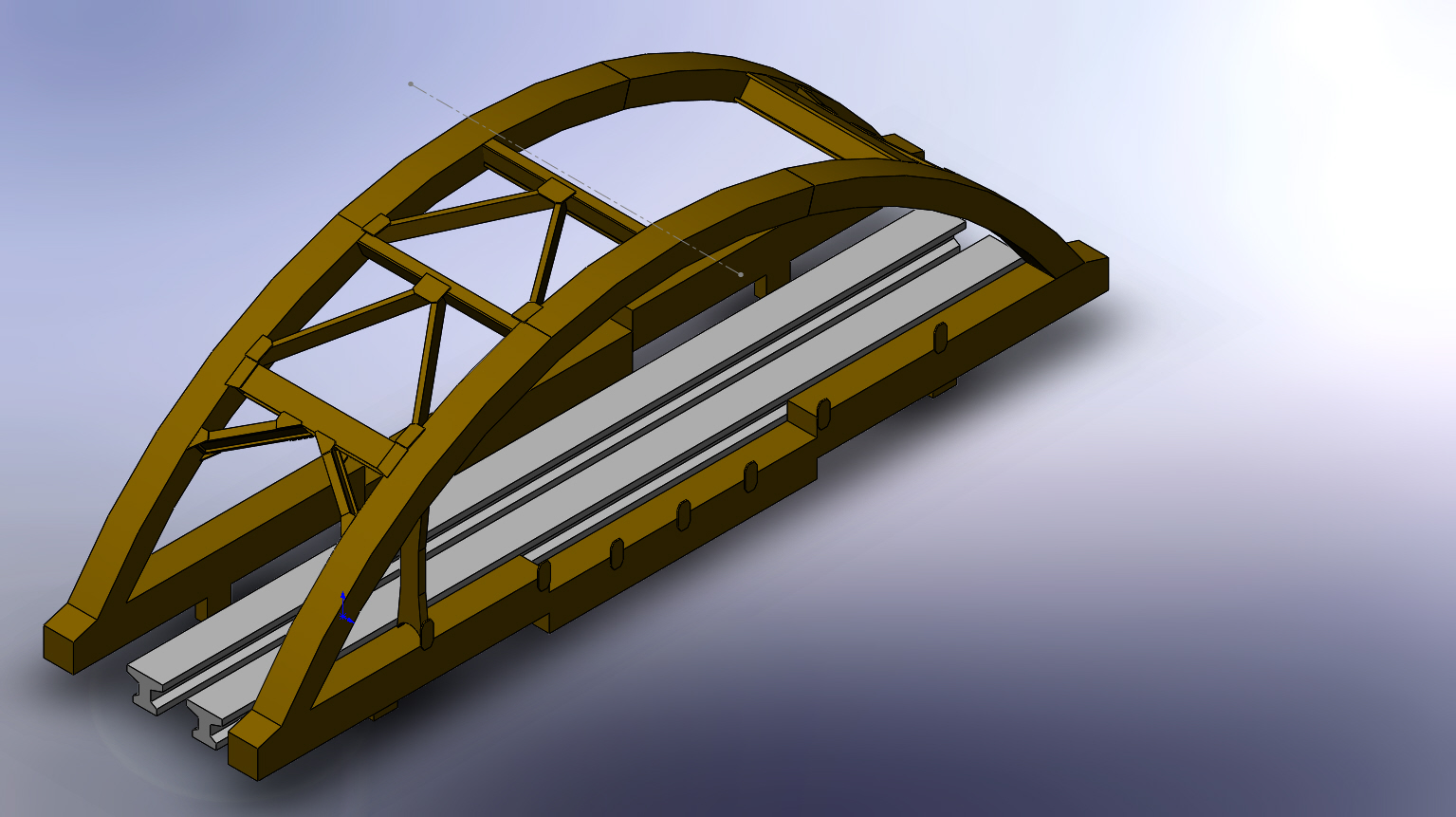 В перспективе мост арочный, двухпутный. С массивным основанием и внушительными размерами. Абсолютно все создается для масштаба: Н0 1:87.
