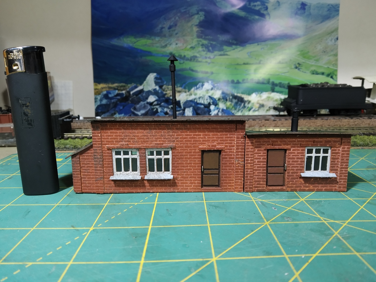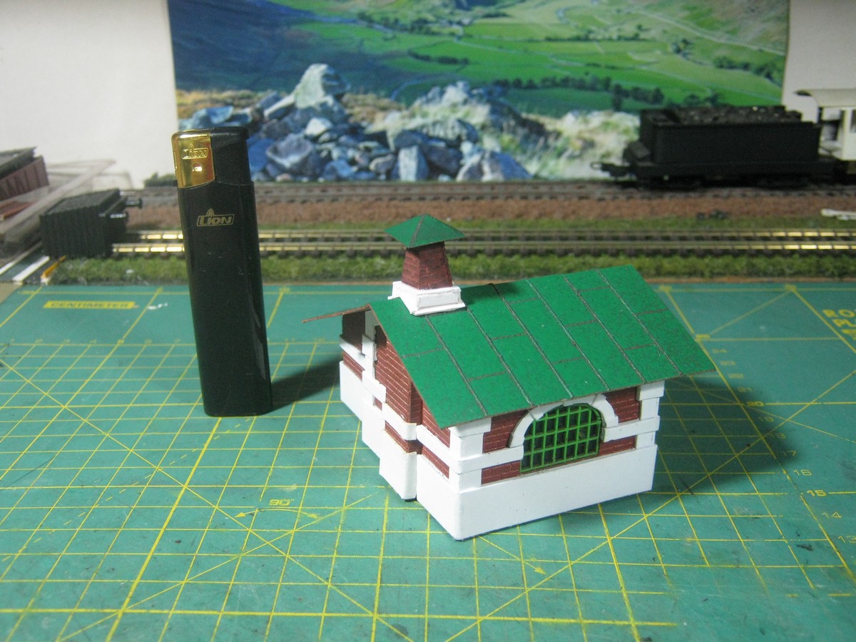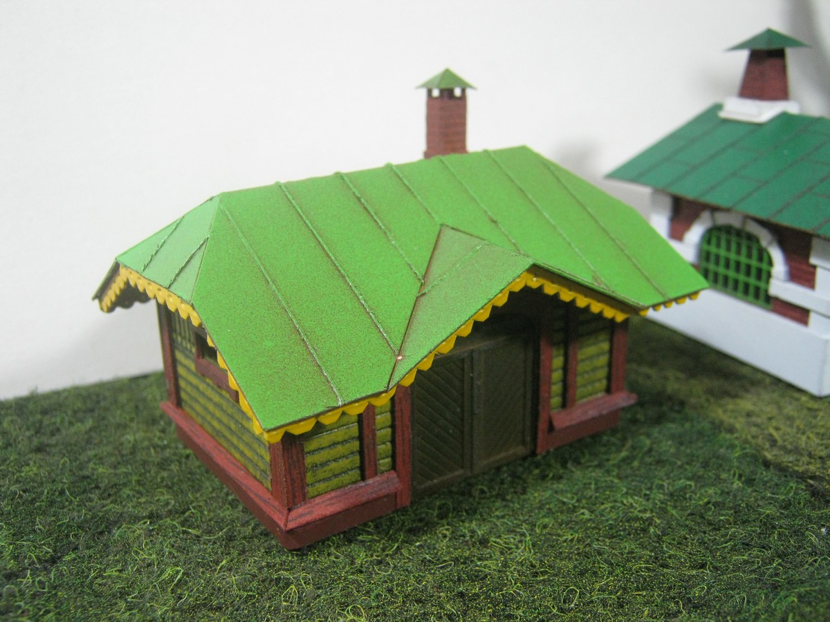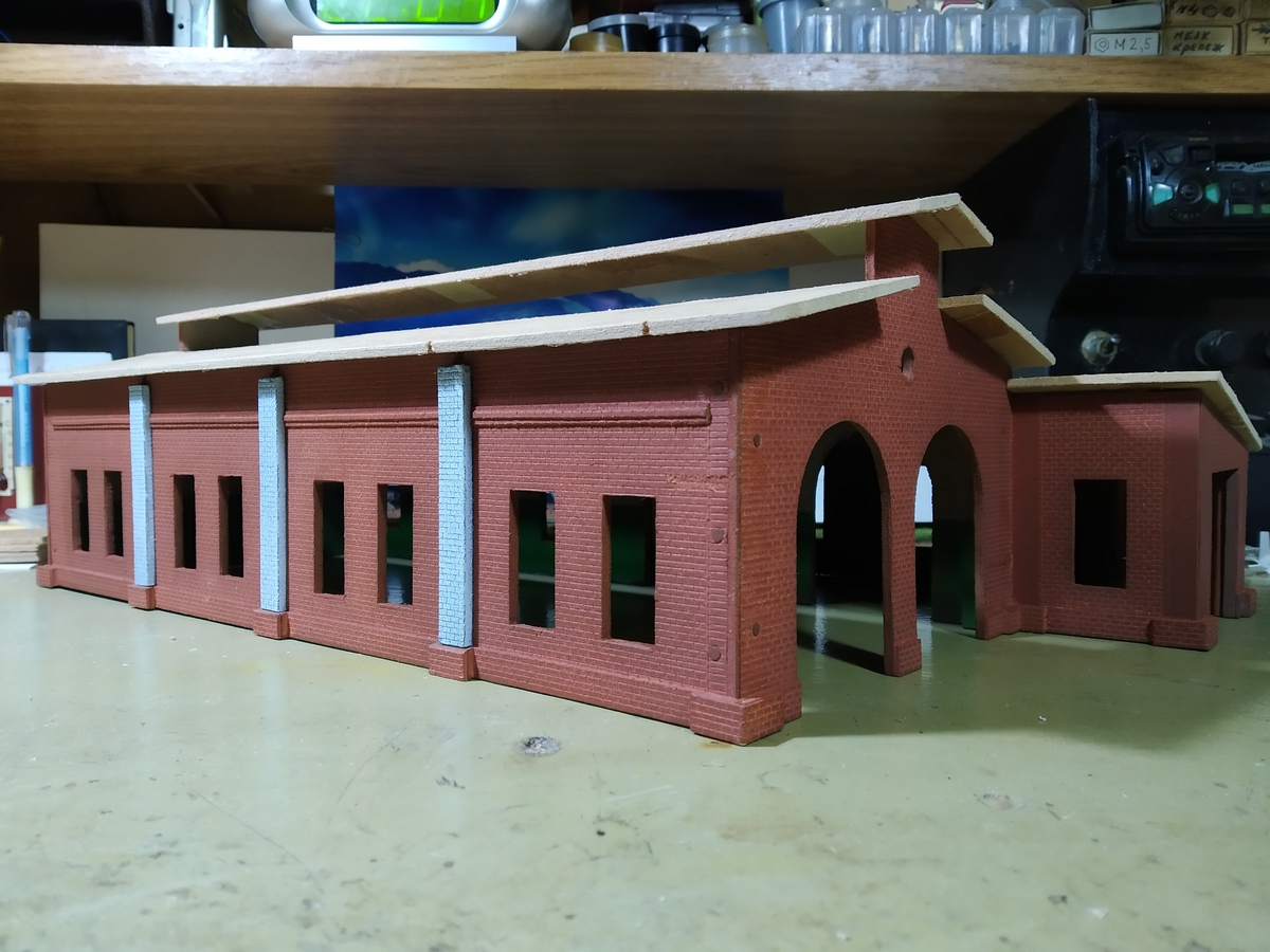 Уже упоминал, что использовал в качестве чертежей "Железнодорожное дело" №5. Коллеги на картонном сайте, занимающиеся разработкой детализированной модели этой кузницы, подсказали, что издательство сильно уменьшило размеры и кузница должна быть прилично больше. Проверил это дело и таки да - модель более соответствует 1:120 ТТ, даже не универсальному 1:100. Входная дверь, в частности, в варианте от издательства получалась 19 мм, а в Н0 должно быть 23 мм. По периметру каждая сторона должна быть больше примерно на 20 мм. Верхнюю перекладину над дверью удалось поднять до 22 мм, до уровня, где начинается сужении арки. Теперь зрительно модель выглядит вполне пропорционально.