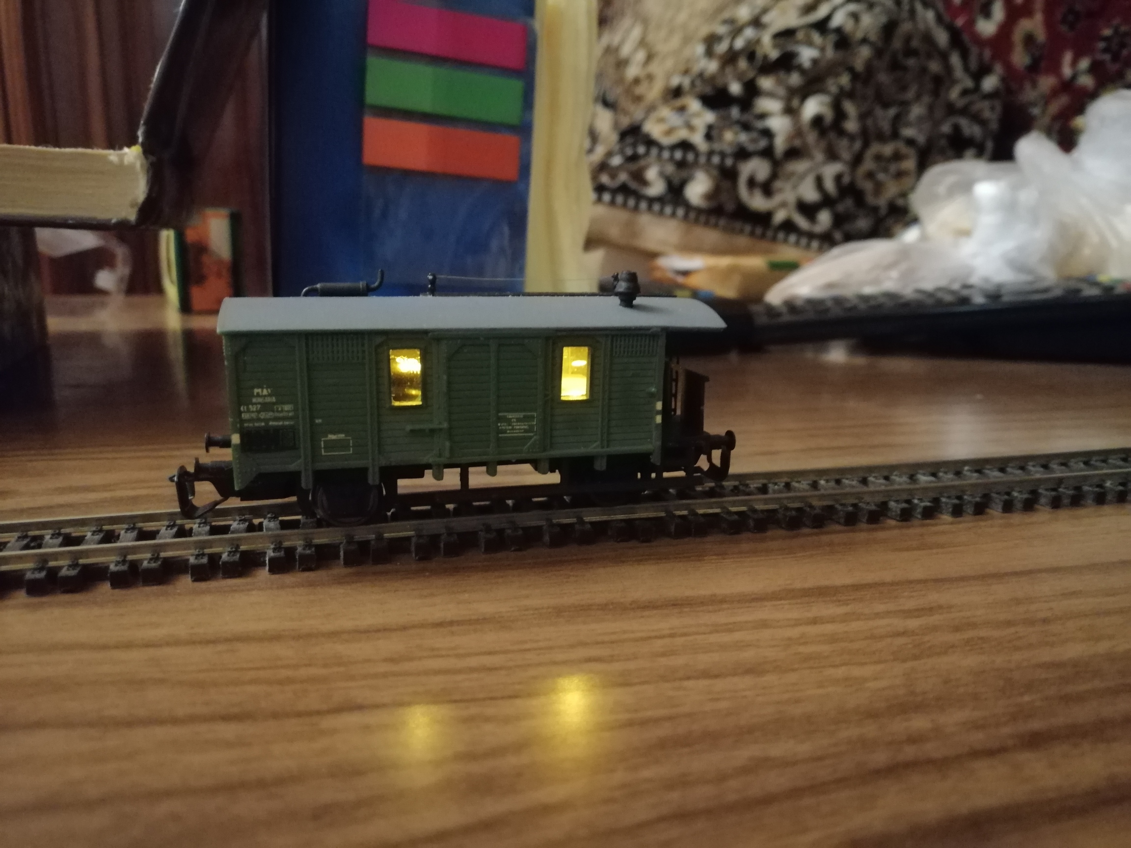 Покраску делал полосатой-типа лень немцам весь вагон красить -это моя проба везеринга.Вагон сделал со светом и задними габаритными огнями, на очереди вагон транспортер -я правда такой транспортер когда-то уже делал но его у меня выкупили так что пилится его братец,скоро выложу фото. Ждем критику и предложения по будущему составу. Сразу вопрос уважаемым единомышленикам- я задние фонари на вагоне генераторе запилил сдурру под крышей а не возле буферов- это может быть комильфо или придется попробовать разобрать вагон и отключить их, правда не очень хочется так как кузов приклеен уже к раме. И второй вопрос мог ли в ДРовском рем составе кататься списаный\отжатый вагон с деками венгерской приписки или они ее сразу перебивали на свою ДР\ДРГ. Состав 2-3 начало 4 зпохи. Ну и думаю кран для состава придеться пилить другой=чтоб был с крюком а не с ковшом и другой конструкции. Ну и может еще подскажете каких вагонов добавить.