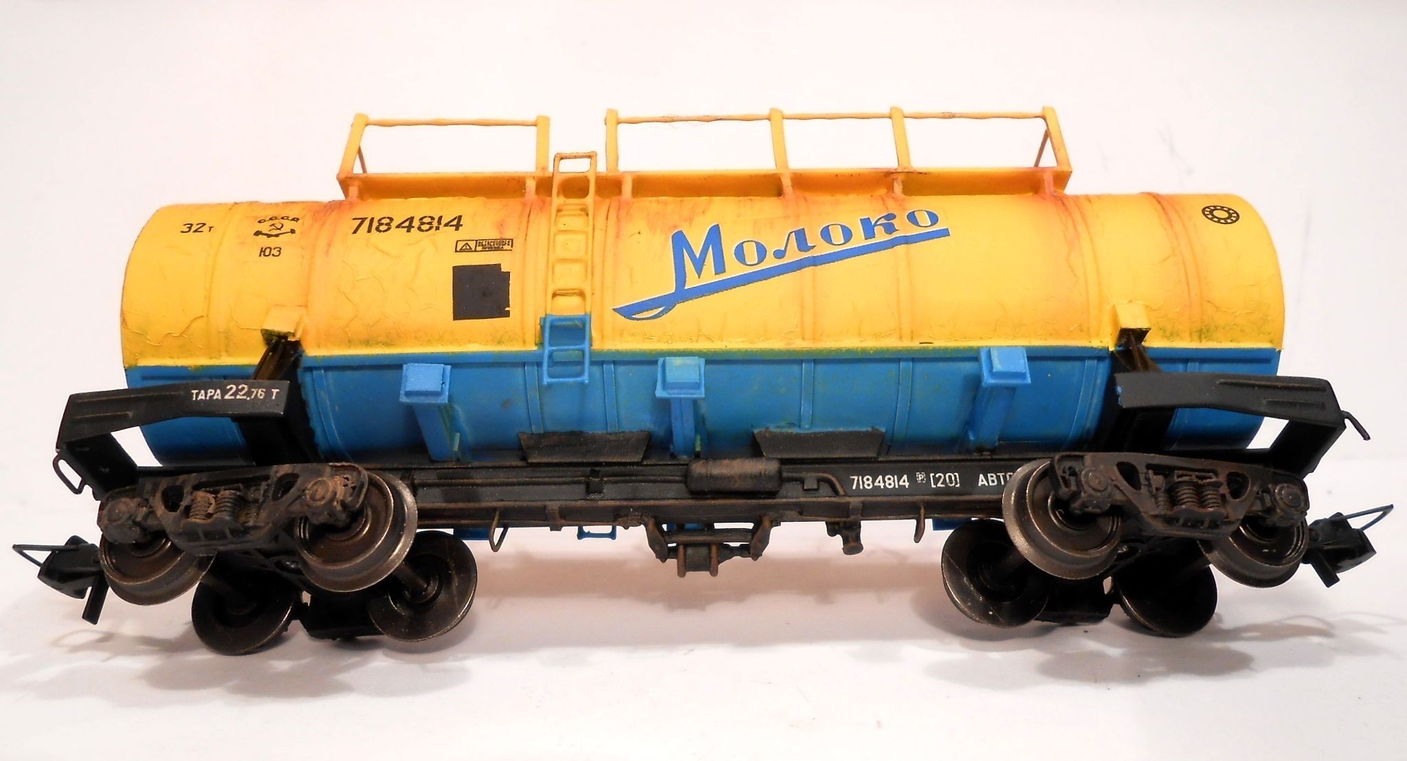 Класная цыстерночка, немного смущает наличие ржавчины не на трапах или поручнях а на самой бочке - емкости для перевозки пищевых продуктов вроде делают с нержавейки хотя возможно цыстерна с двойными стенками ,хотя могу и ошибаться, а в целом отличная моделька.