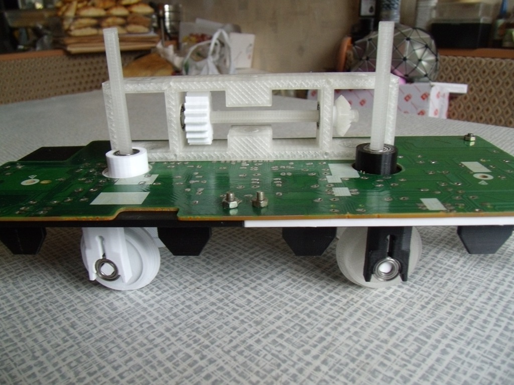 Подоспели подшипники, прибросил ходовку. Долго подгонял друг к другу шестерни/оси/подшипники/колеса, вроде получилось неплохо.