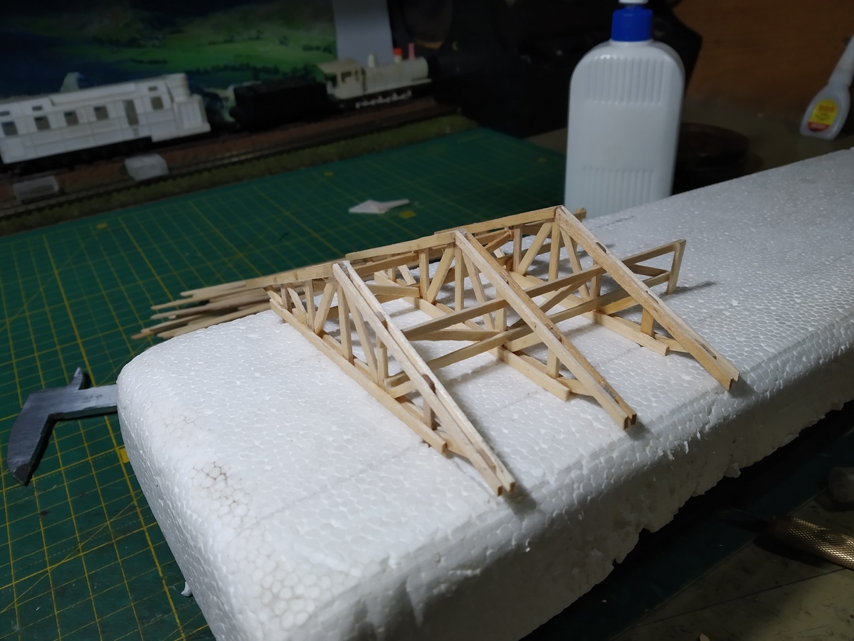Деревянные палочки, применяющиеся для размешивания кофе. Толщина 1 мм, ширина 6,5 мм. Распущены в длину пополам и приспособлены для изготовления стропил и поддерживающей фермы.