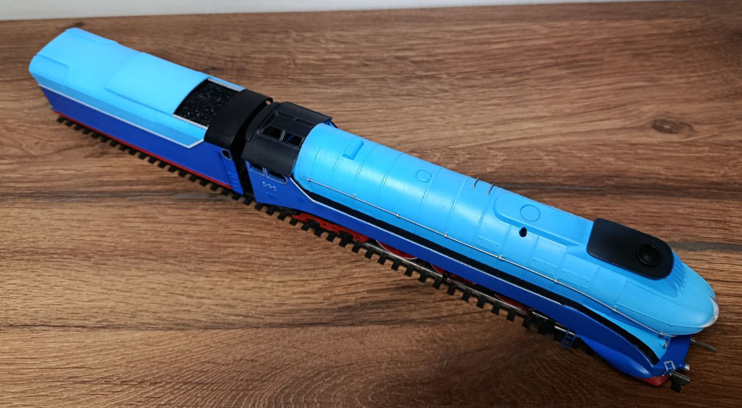 Закончил паровоз кроме пары мелочей. Когда лак полностью полимеризуется, вставлю стекла и поправлю пару косяков в окраске тендера. По ссылке видео как ездит https://drive.google.com/file/d/1juGIT9 ... sp=sharing