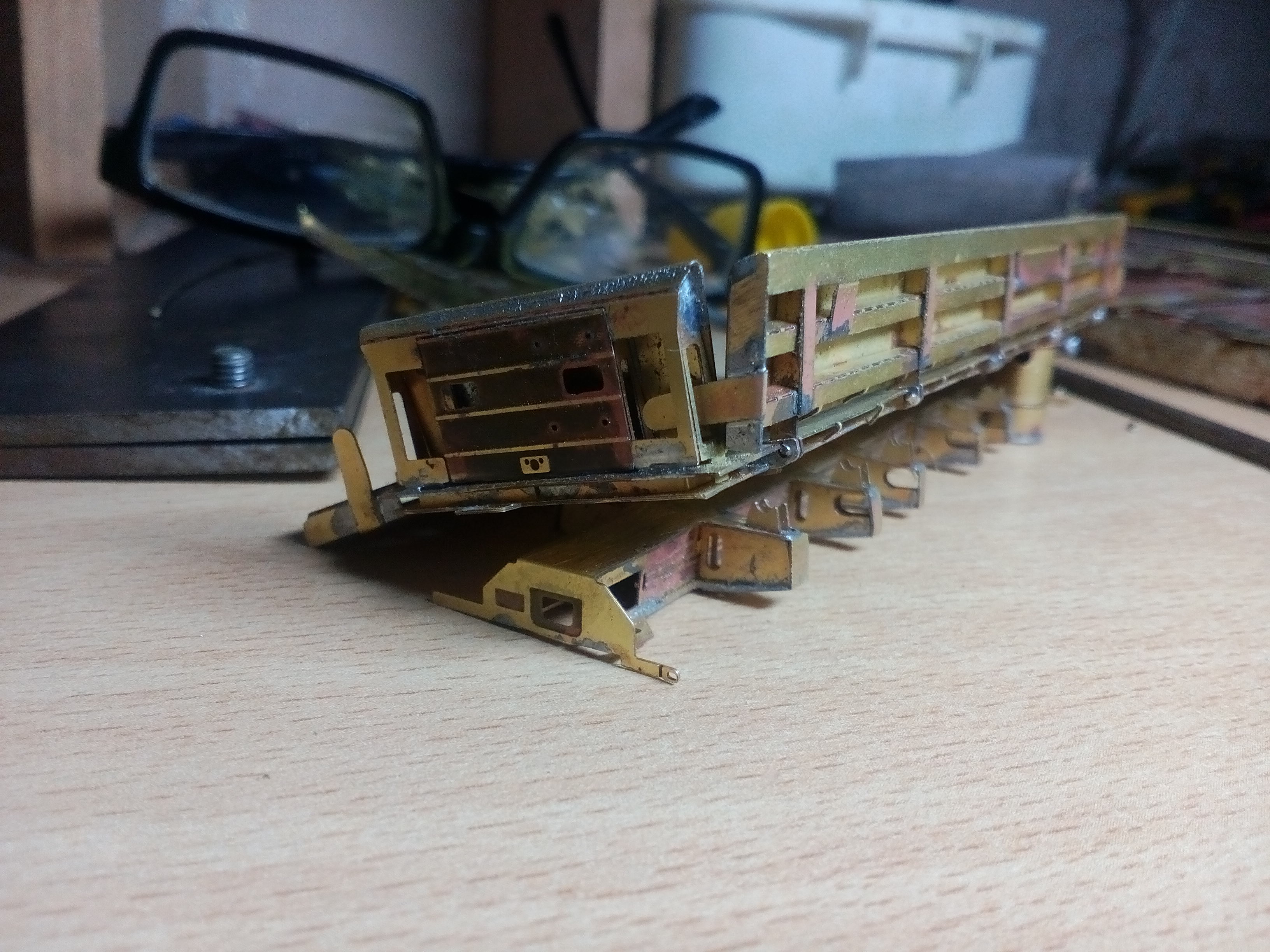 Ну вот закончил я с вагонами , и попер в бой с чс2. Решил добавить себе сложностей , сверху переборка временная , чтоб не сложилось все! Шарнир специально сделал кривым , чтоб до конца не открывалась! Ну и на цилиндры свое травло примерял!