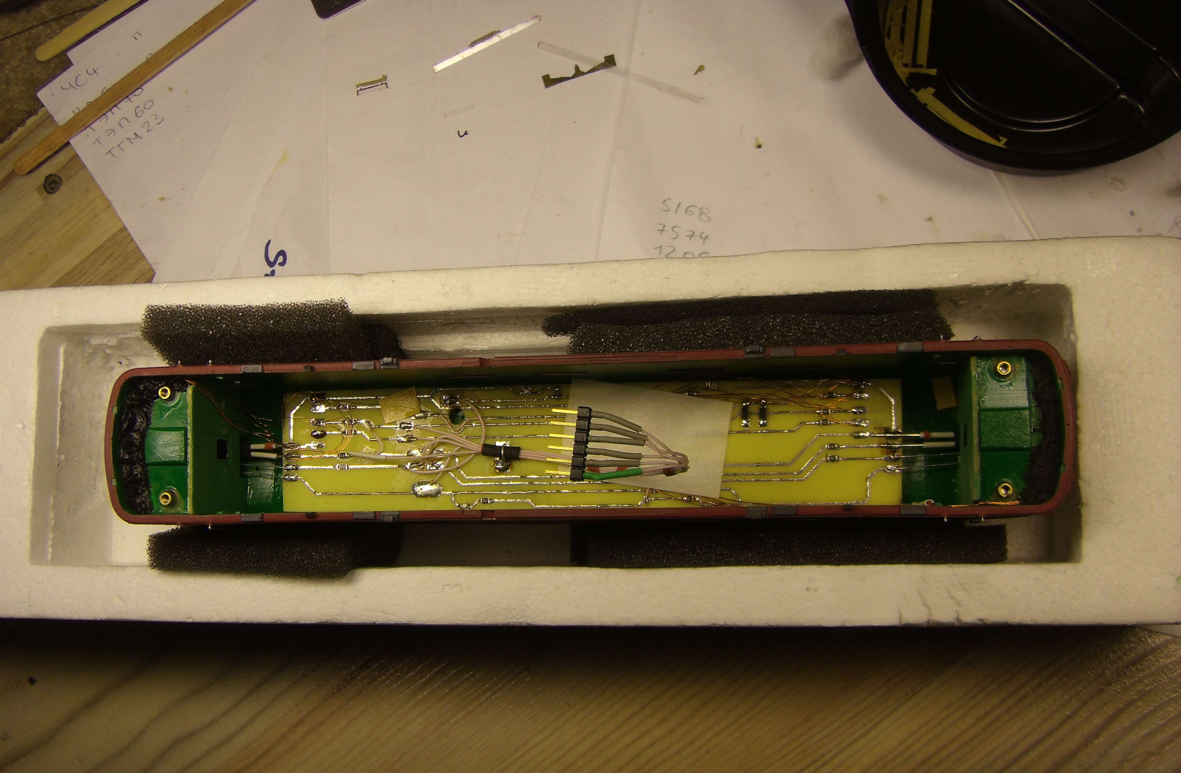 Когда уже сделана антенна, кузов уже не положишь просто так на крышу, и что бы комфортно работать дальше с моделью, пришлось делать специальный бокс с поролоном именно под этот кузов, очень удобно получилось..