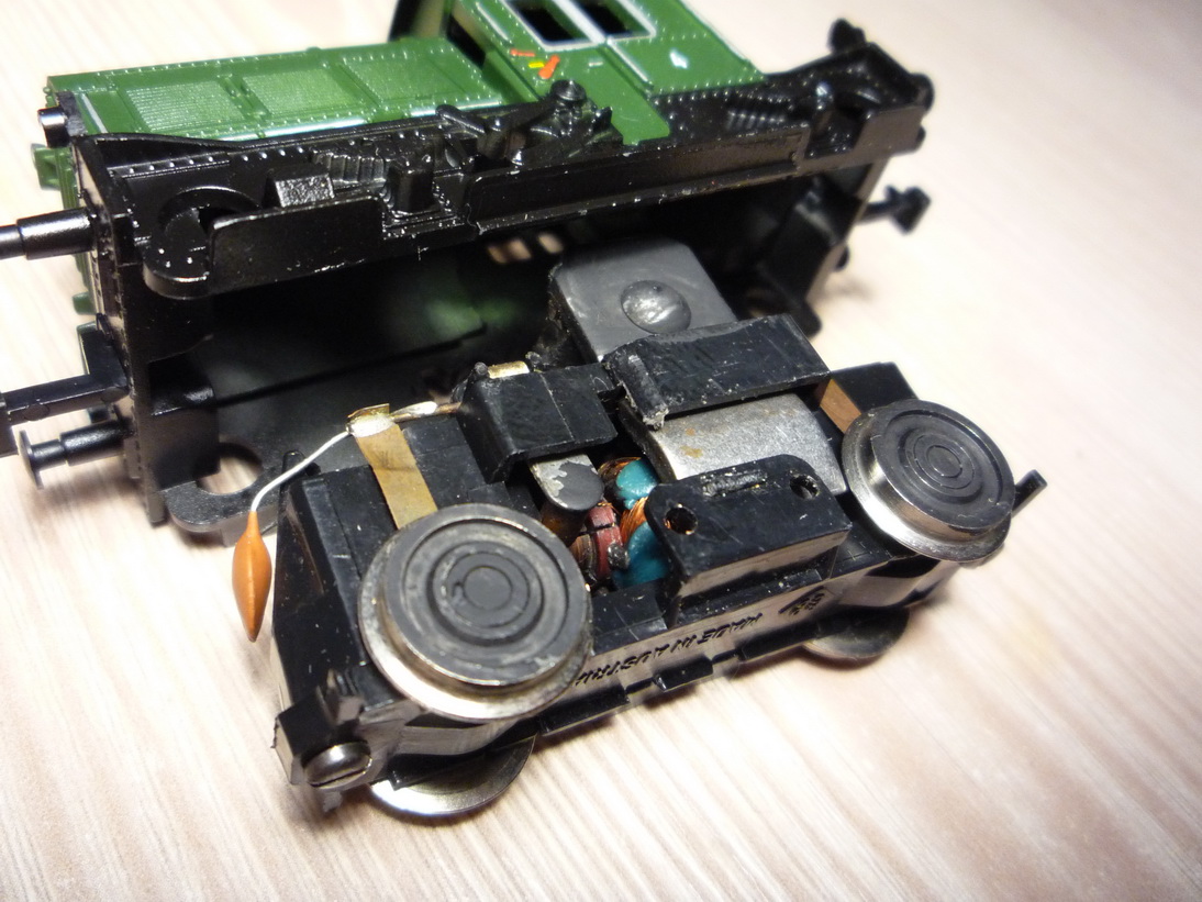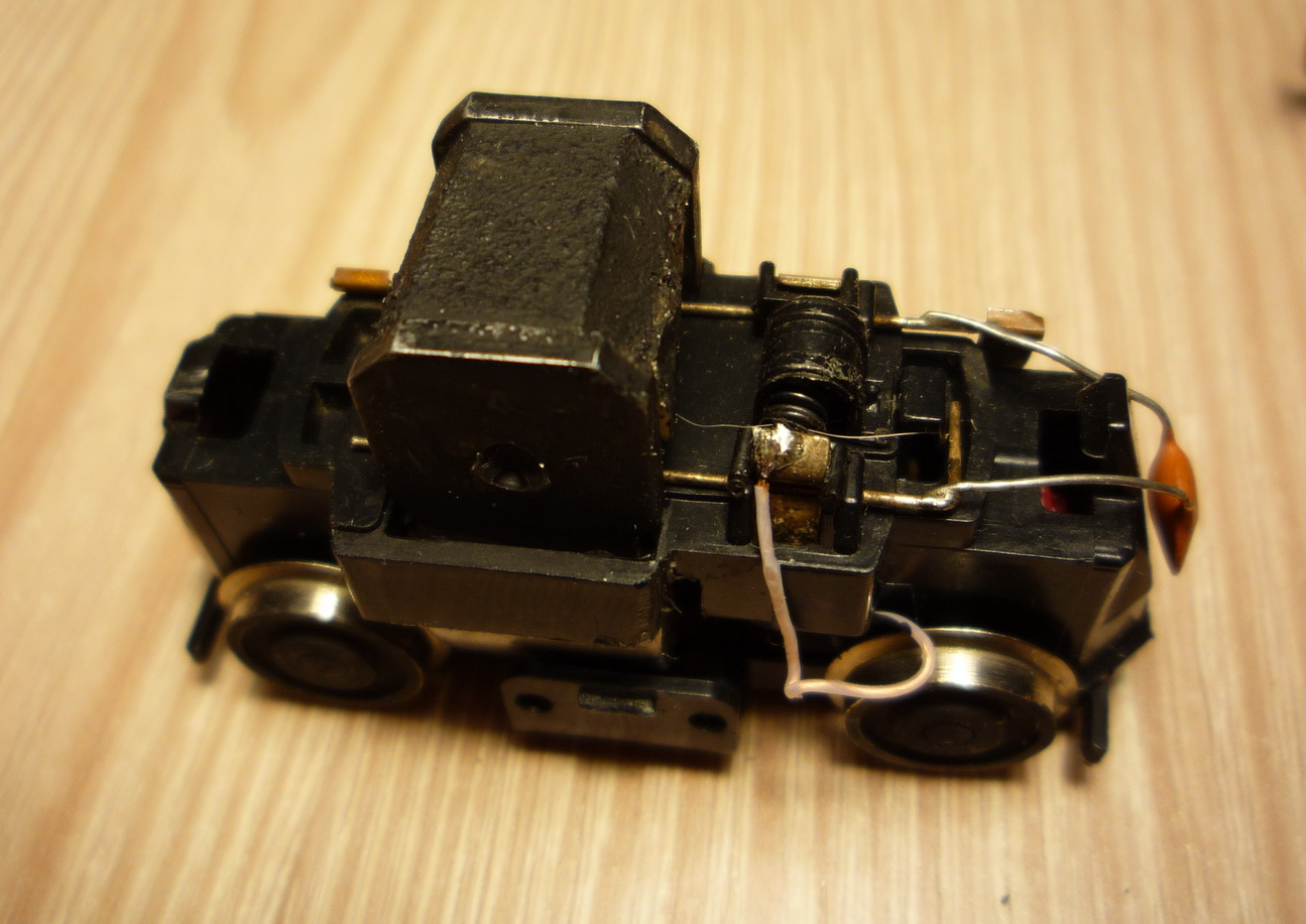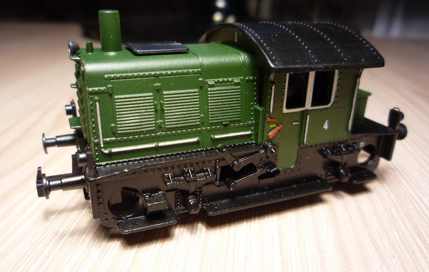 Мне достался вот такой, ещё старого выпуска, только в худшем состоянии: Почистил, смазам механику, перекрасил корпус, сделал буферные фонари - получился маленький маневровый "клоп" частной ЖД.