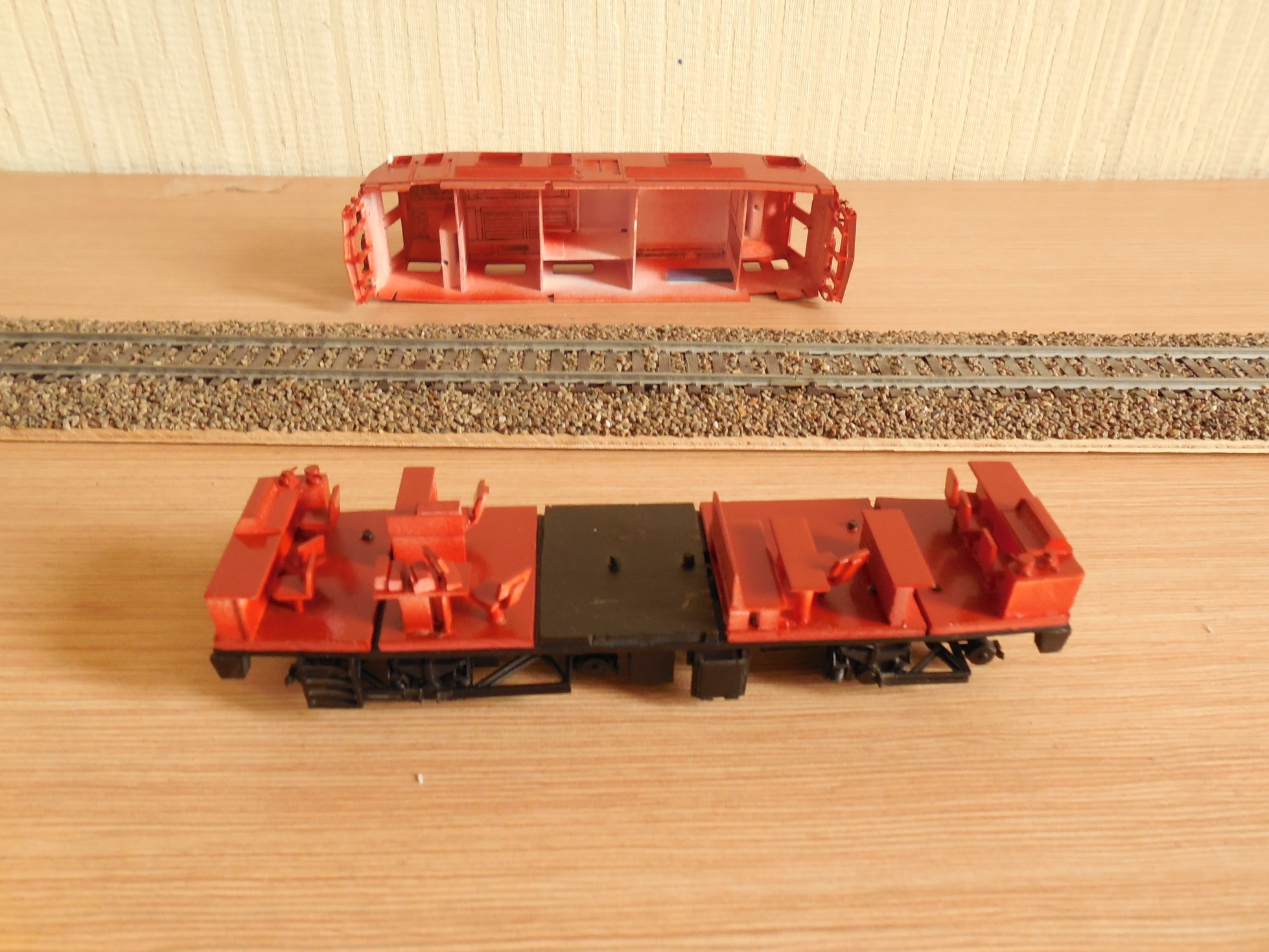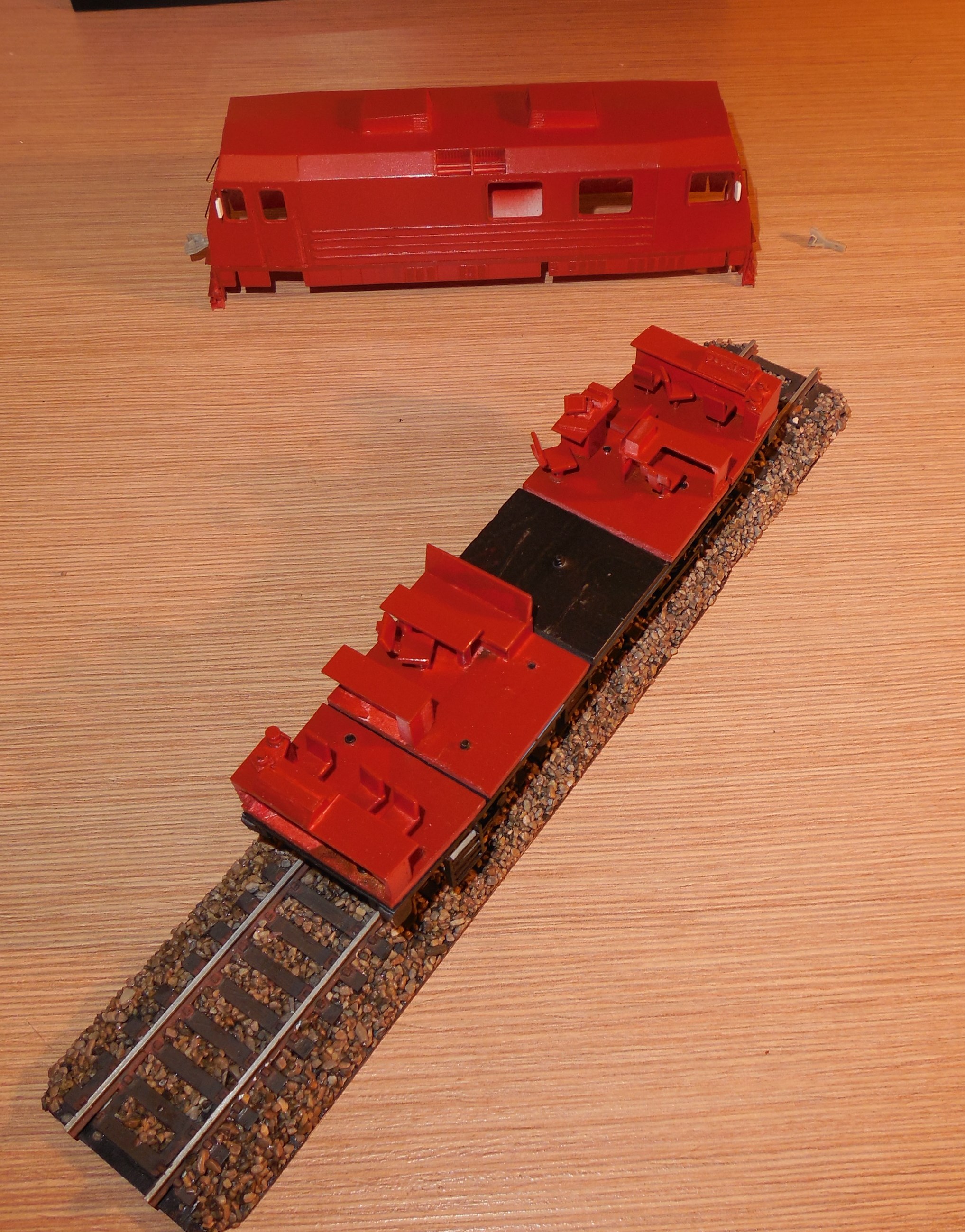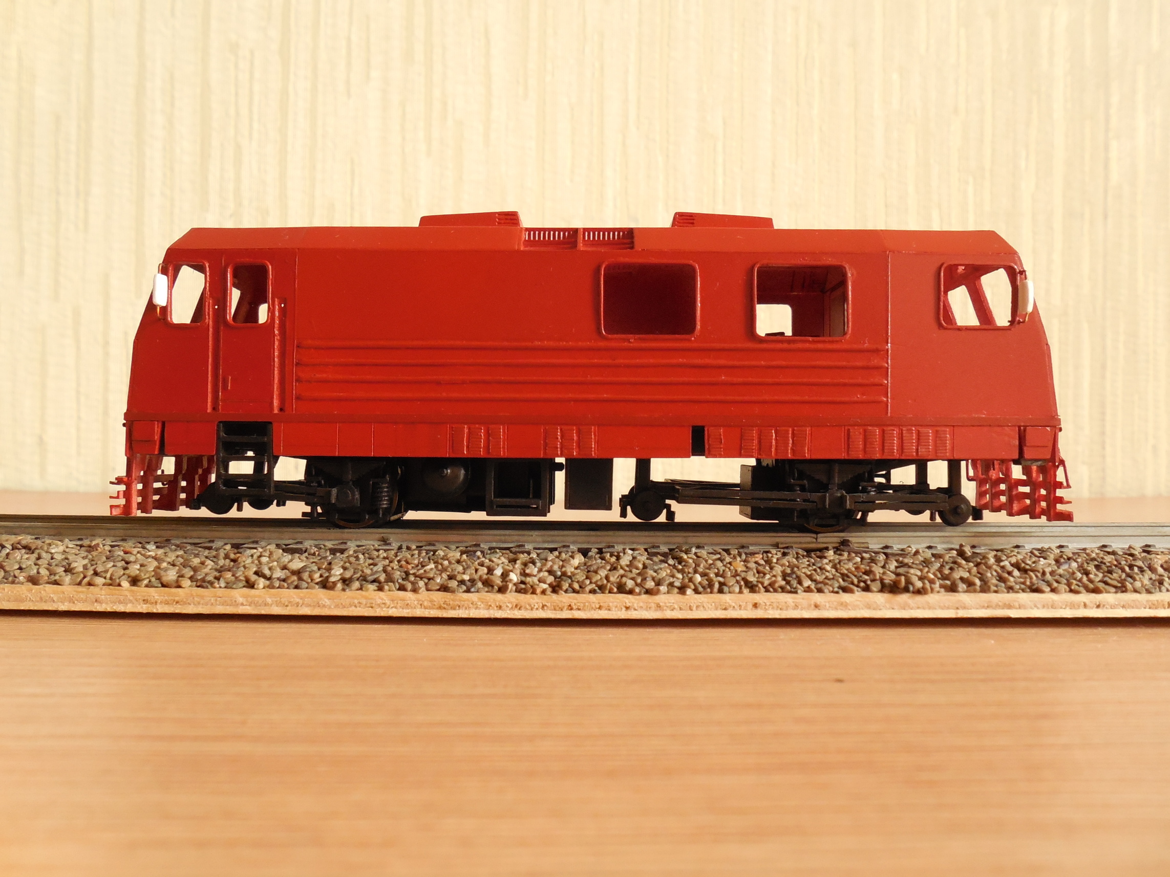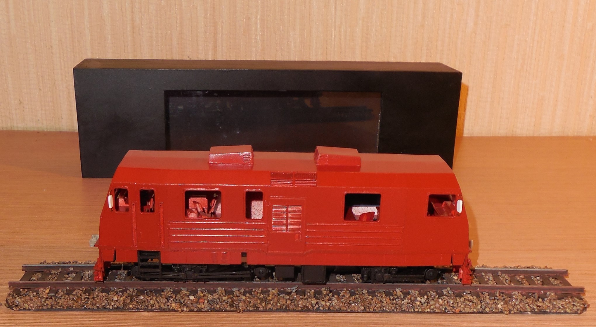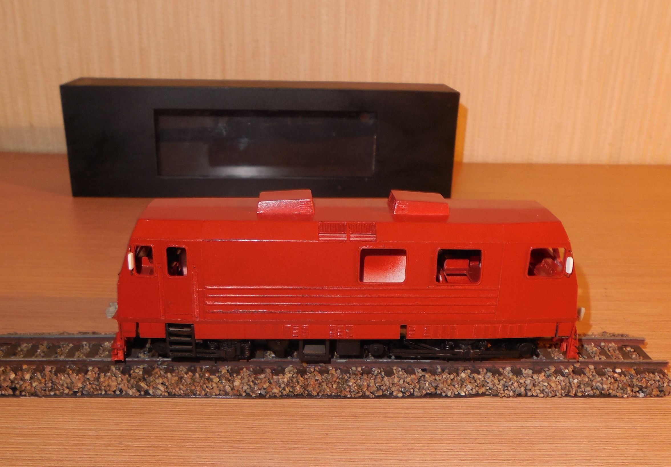 Сделав бокс пластиковый, сделал подставку из полотна с баластом , и загрунтовал модель.