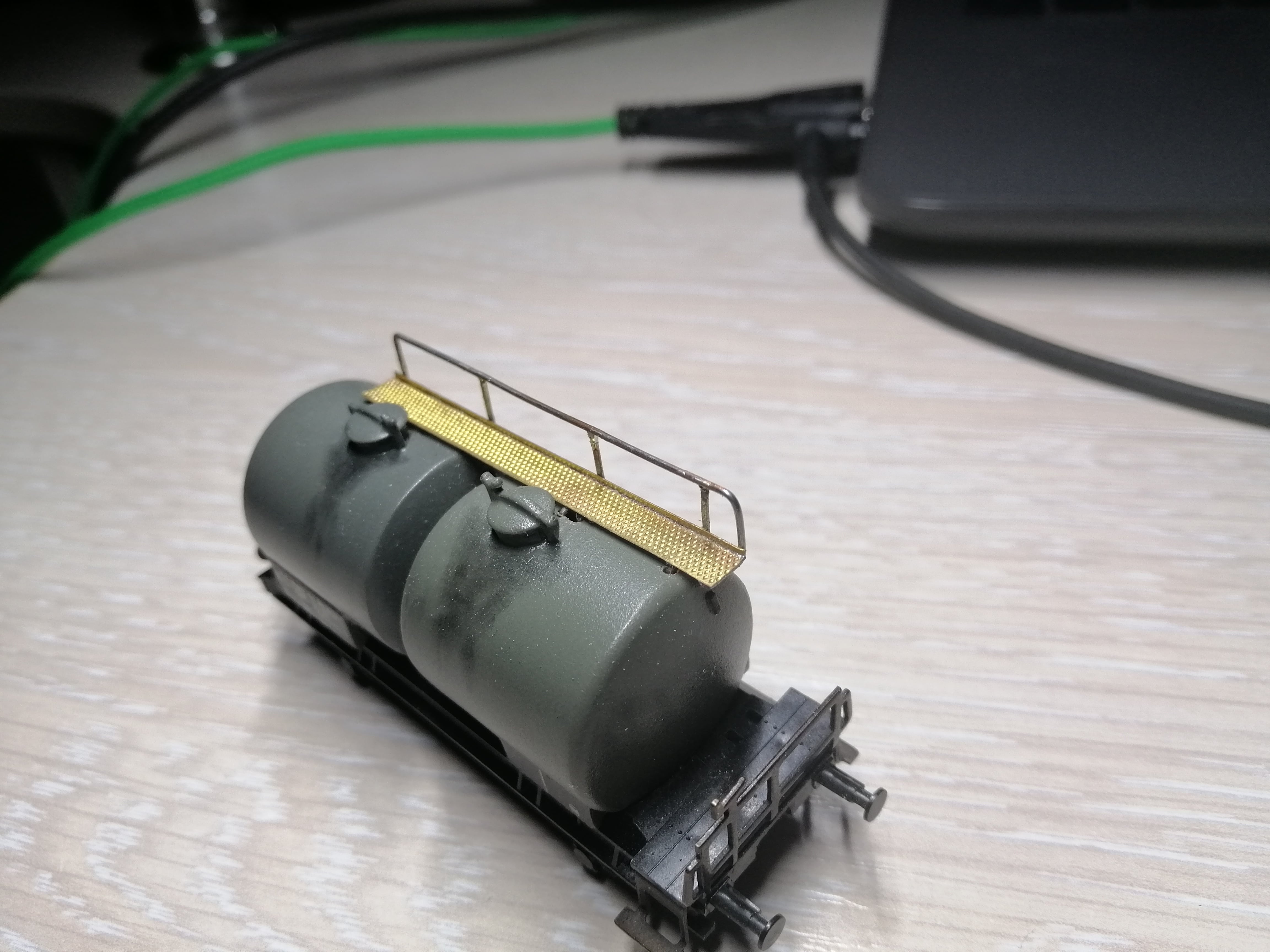 Закінчив роботу по вагону. нарешті придумав просту технологію щоб бистро і просто без всяких кондукторів паять нормальні обьемні драбинки любої довжини до вагонів. Спаяв. покрасив.трохи вазюкнув Ну і заодно запиляв бетонний пол з водозаборними трапами . трохи завазюкав