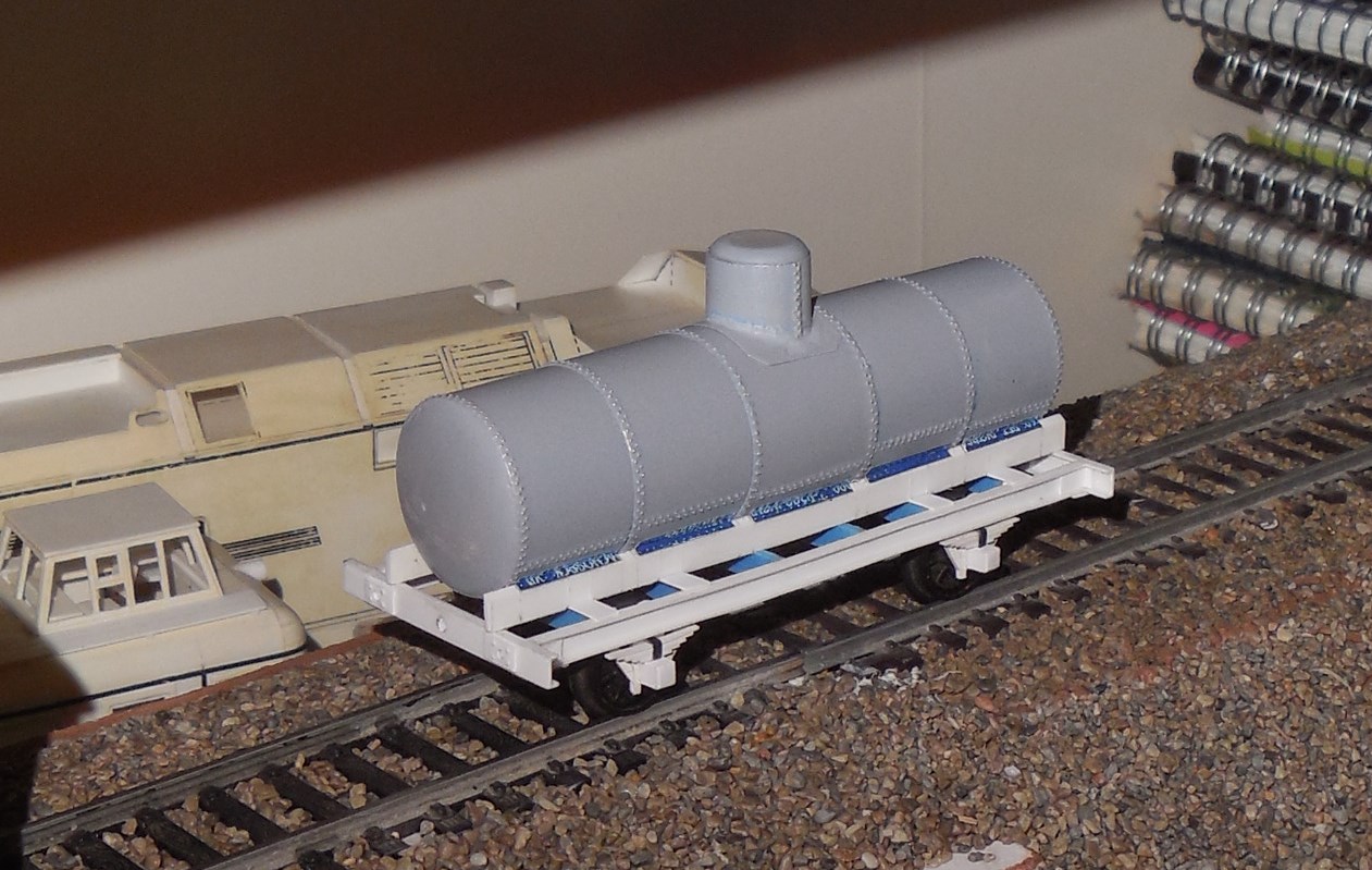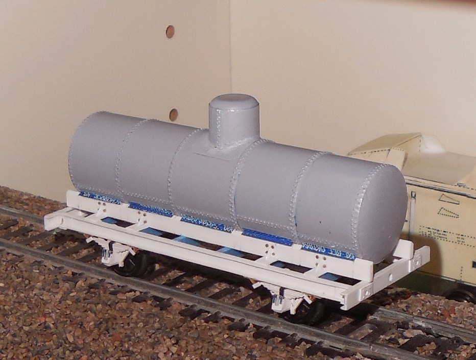 Бак делал так - трубка пластиковая, по торцам 2мм куски наклеил обточил скруглил\шпаклевал, потом 5 барабанов наклеил внахлест , перед этим натыкав двойные шахматно "клепки", загрунтовал.