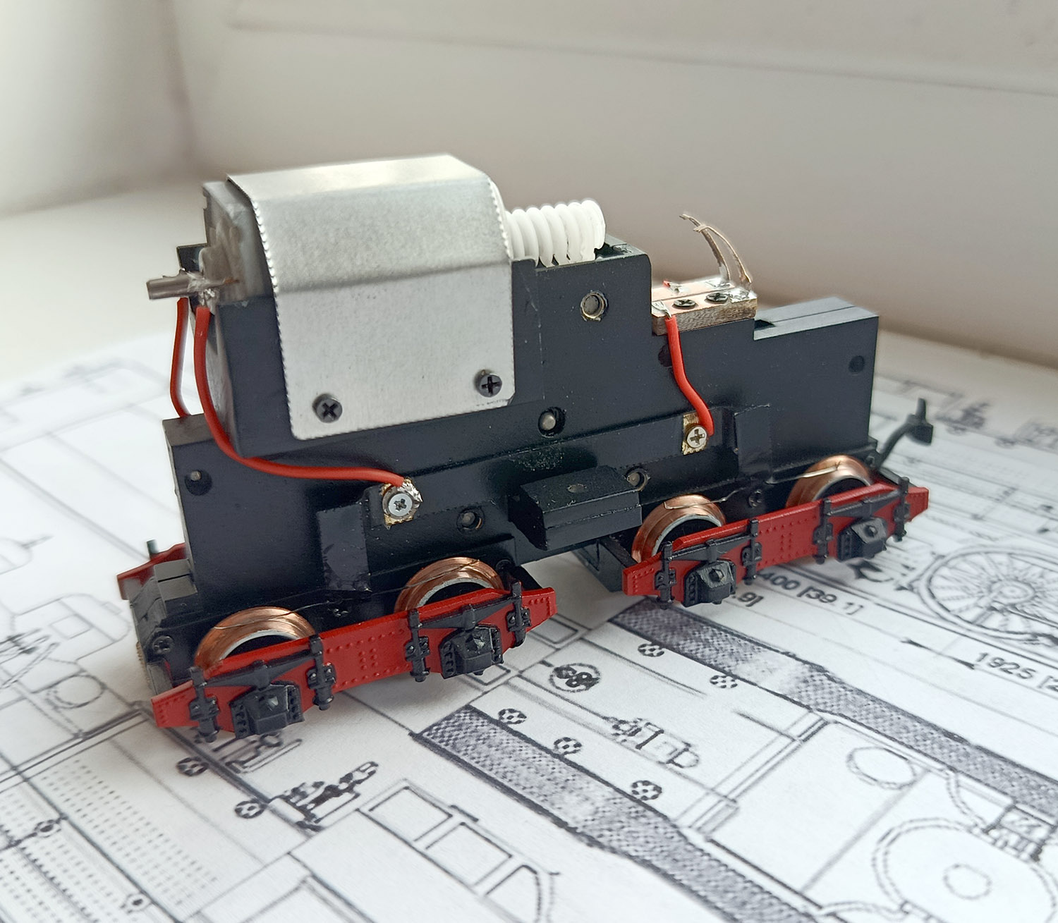 Тендер я все таки переделал под 2 двигателя в тележках, минимально модифицировав уже изготовленные. Они правда вдвое более высокооборотные и придется что то делать с этим, что б товарный паровоз не носился как пассажирский, но зато значительно меньше шума. Впервые попробовал использовать в паровозе китайские бронзовые втулки на оси, пока вроде без особых нареканий, правда придется что то сделать, что б прижимная пластина снизу одинаково плотно прилегала ко всем втулкам, без зазоров