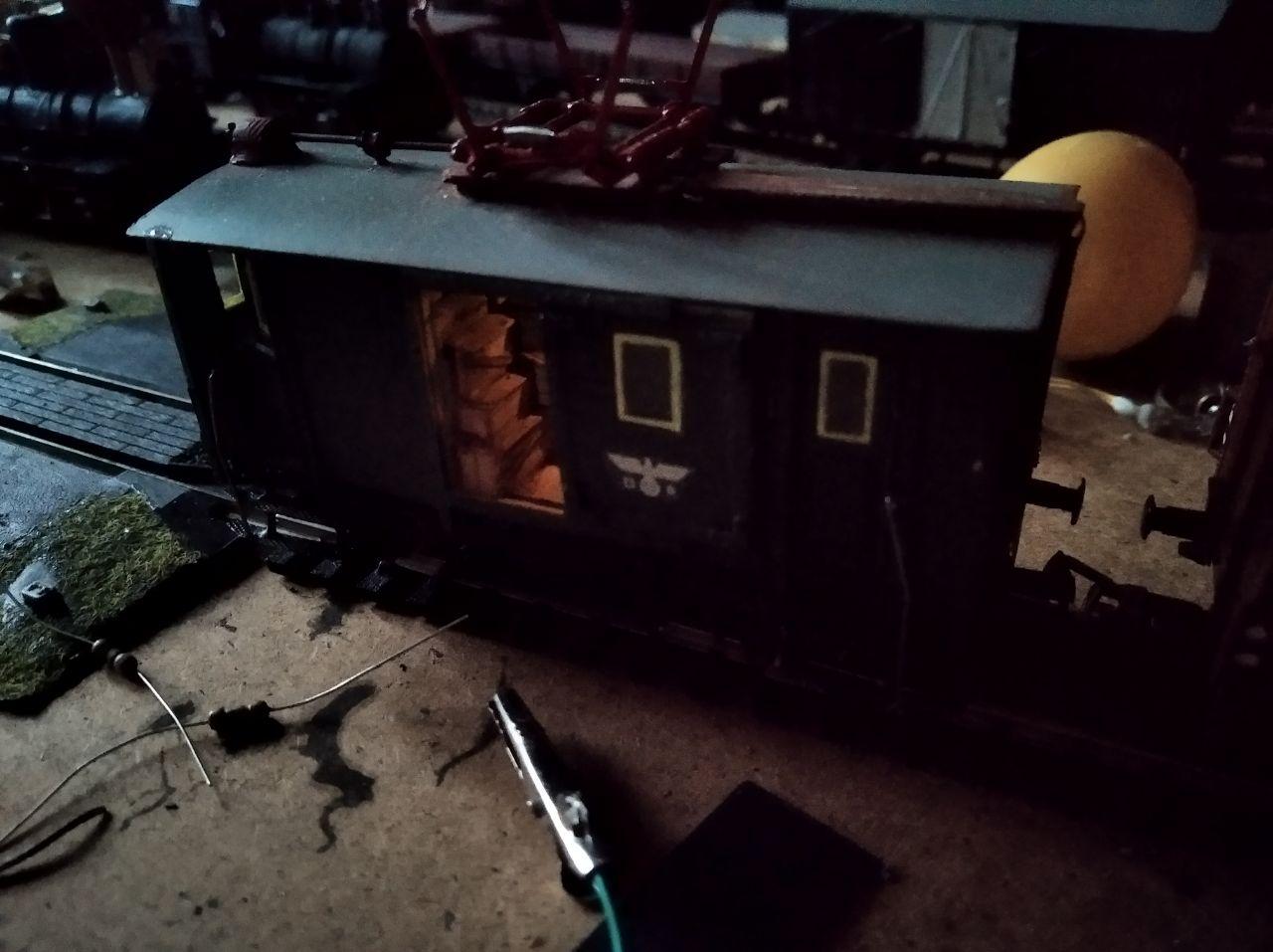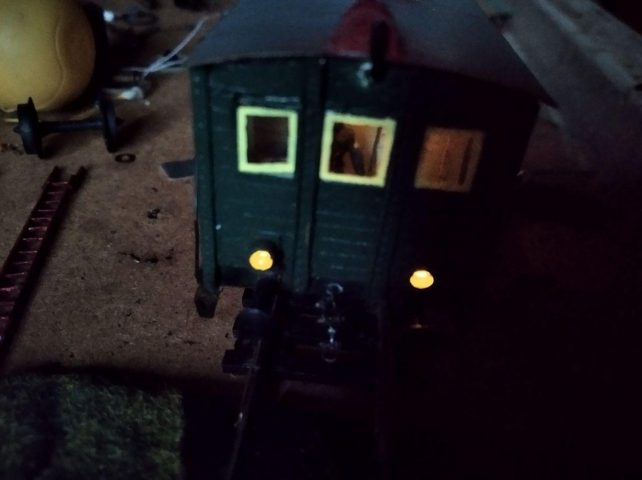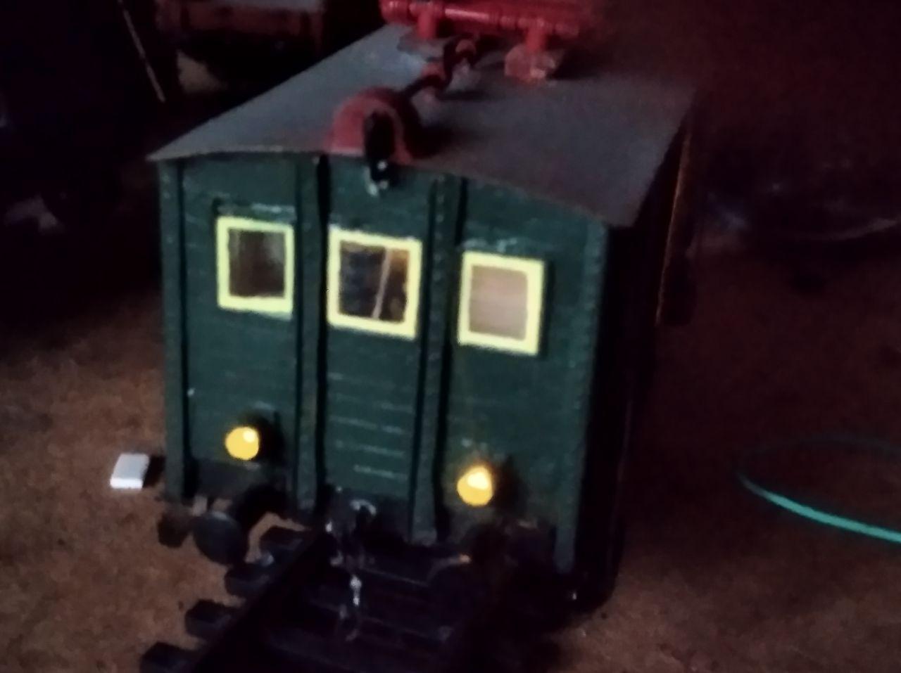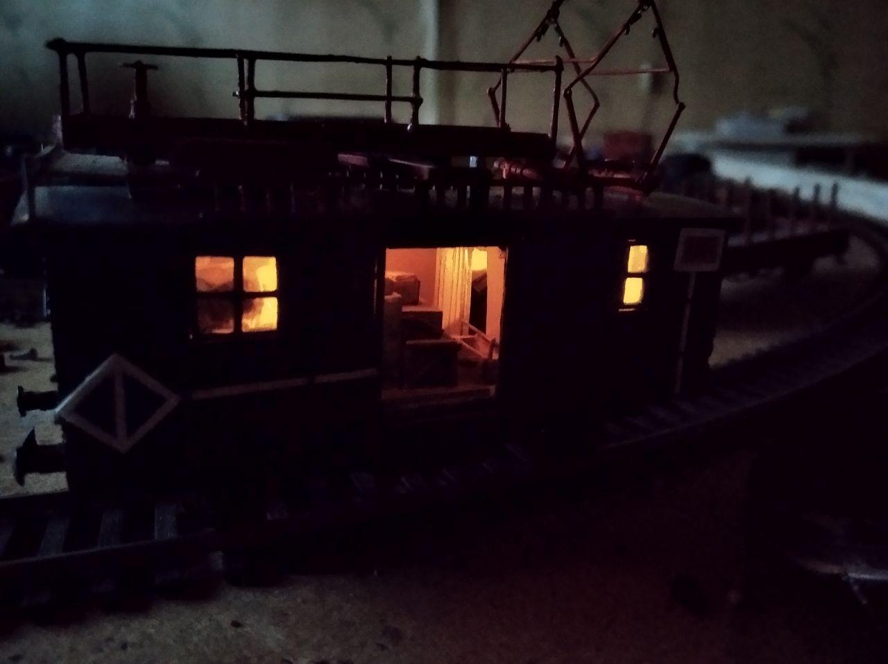 Вагон для обслуживания конташки. В последствии силу света уменьшил, сделав на светодиодах.