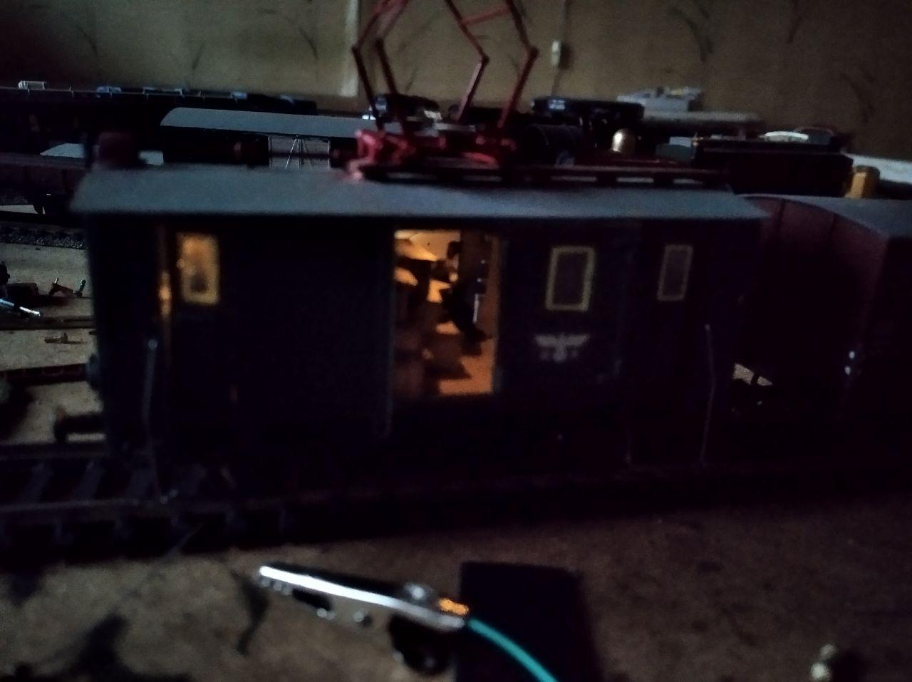 По сему маемо шо маемо. В целом сам доволен, но понимаю, что для меня работа с пластиком, это шаг назадю.... Присутствует свет по направлению движения в фонарях, кабинах машиниста и постоянный в центральном отсеке. В перспективе заменю колеса на спицованные, к сожалению сейчас нету марклиновских короткозамкнутых колес.