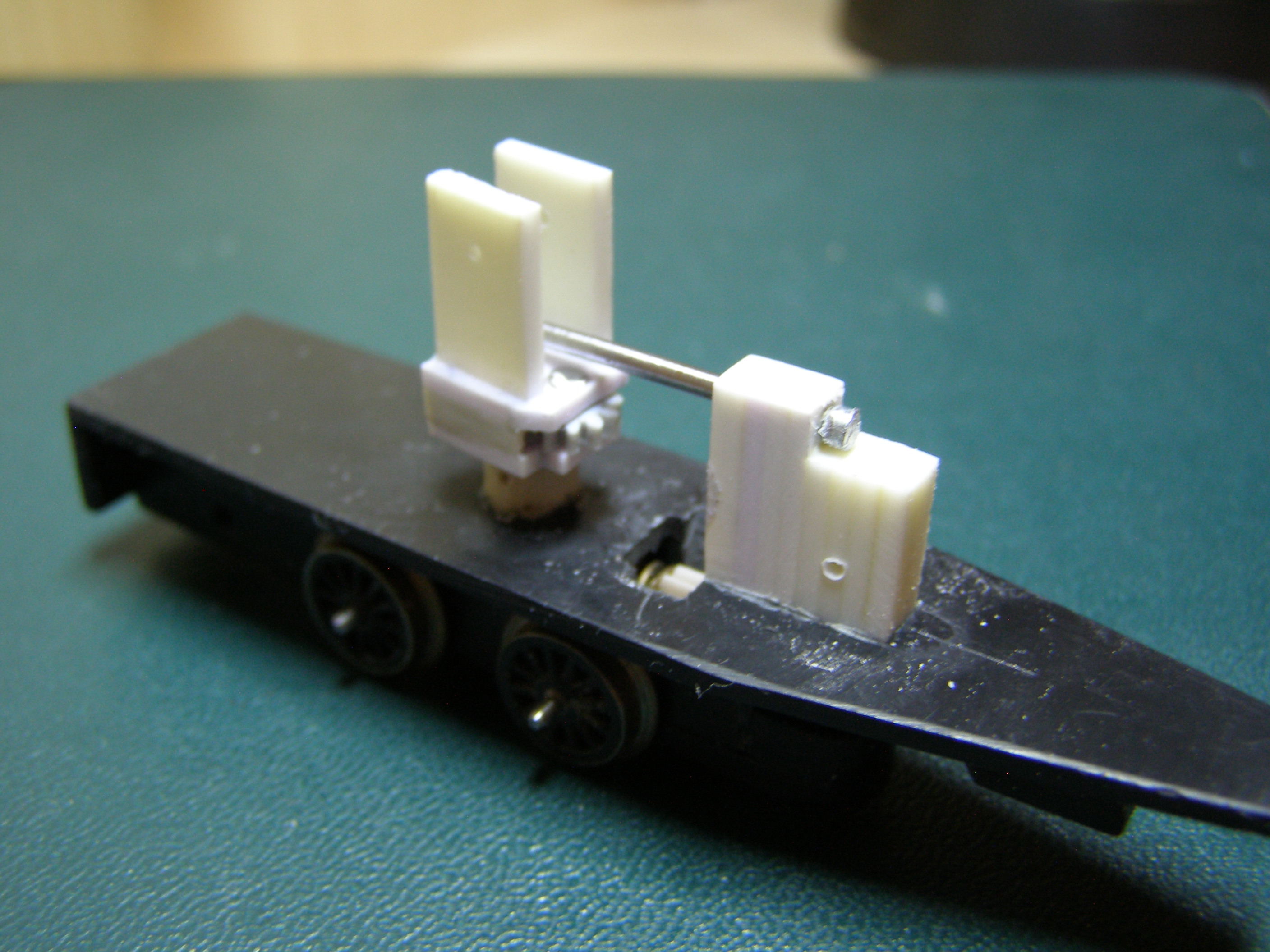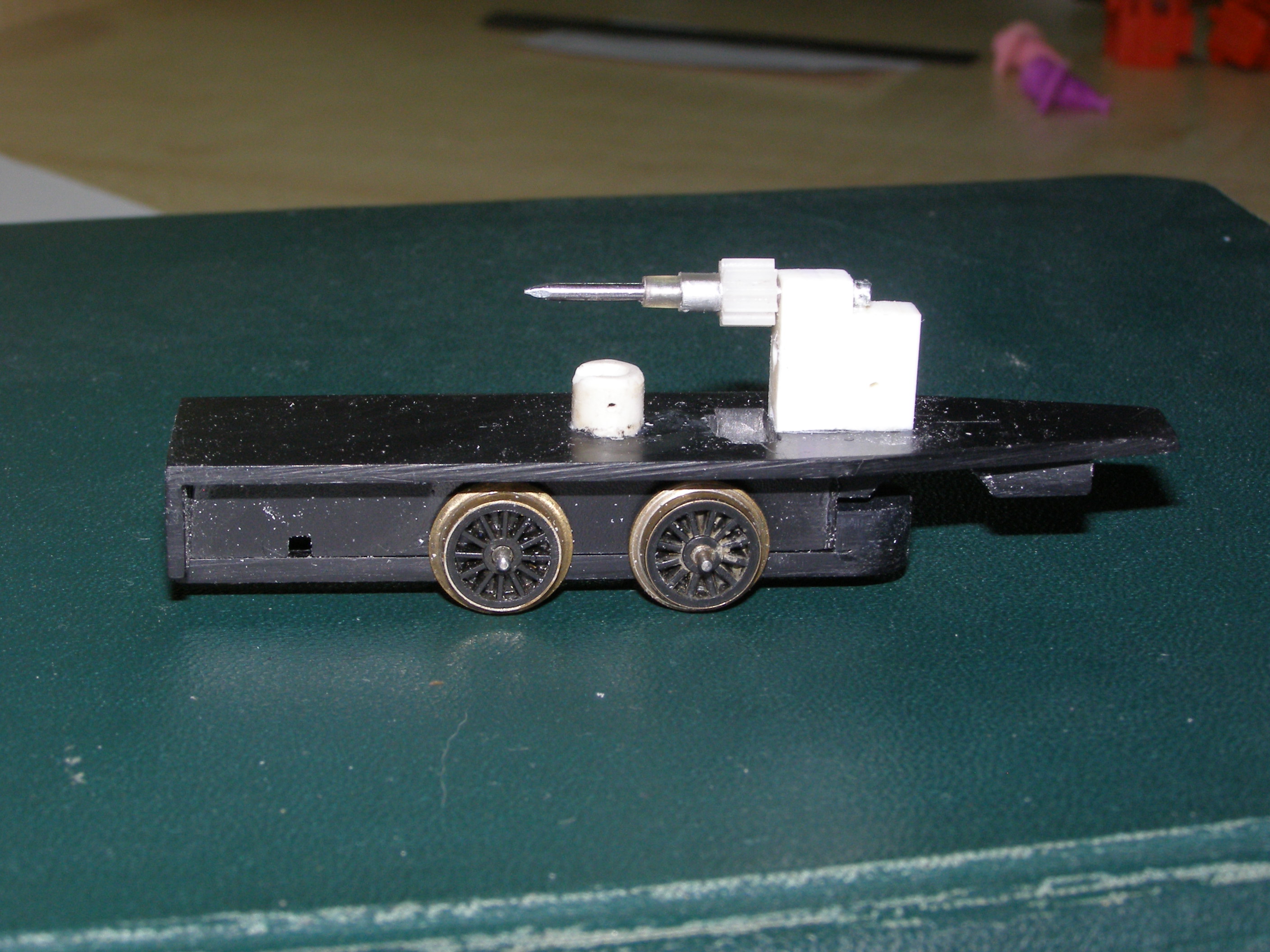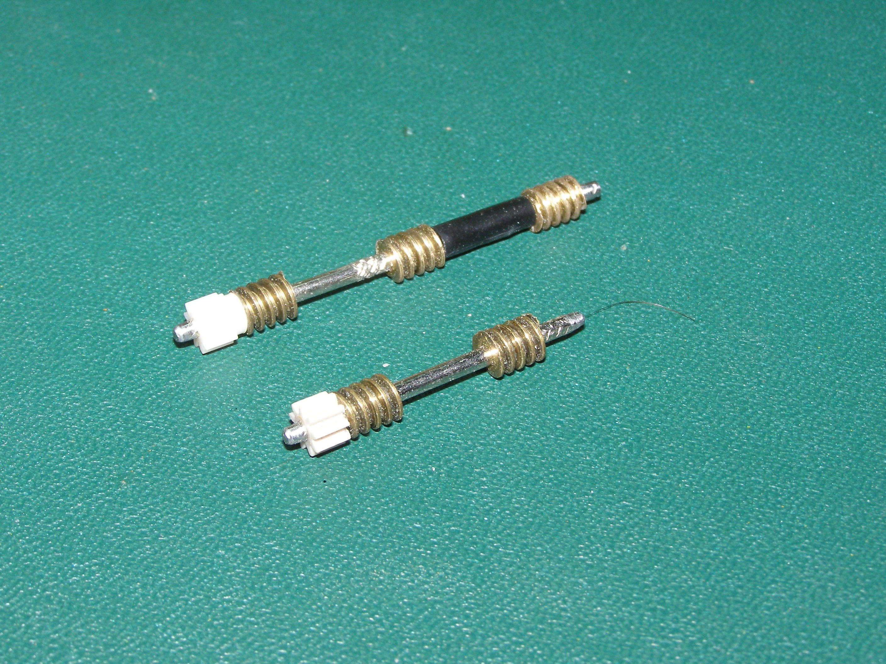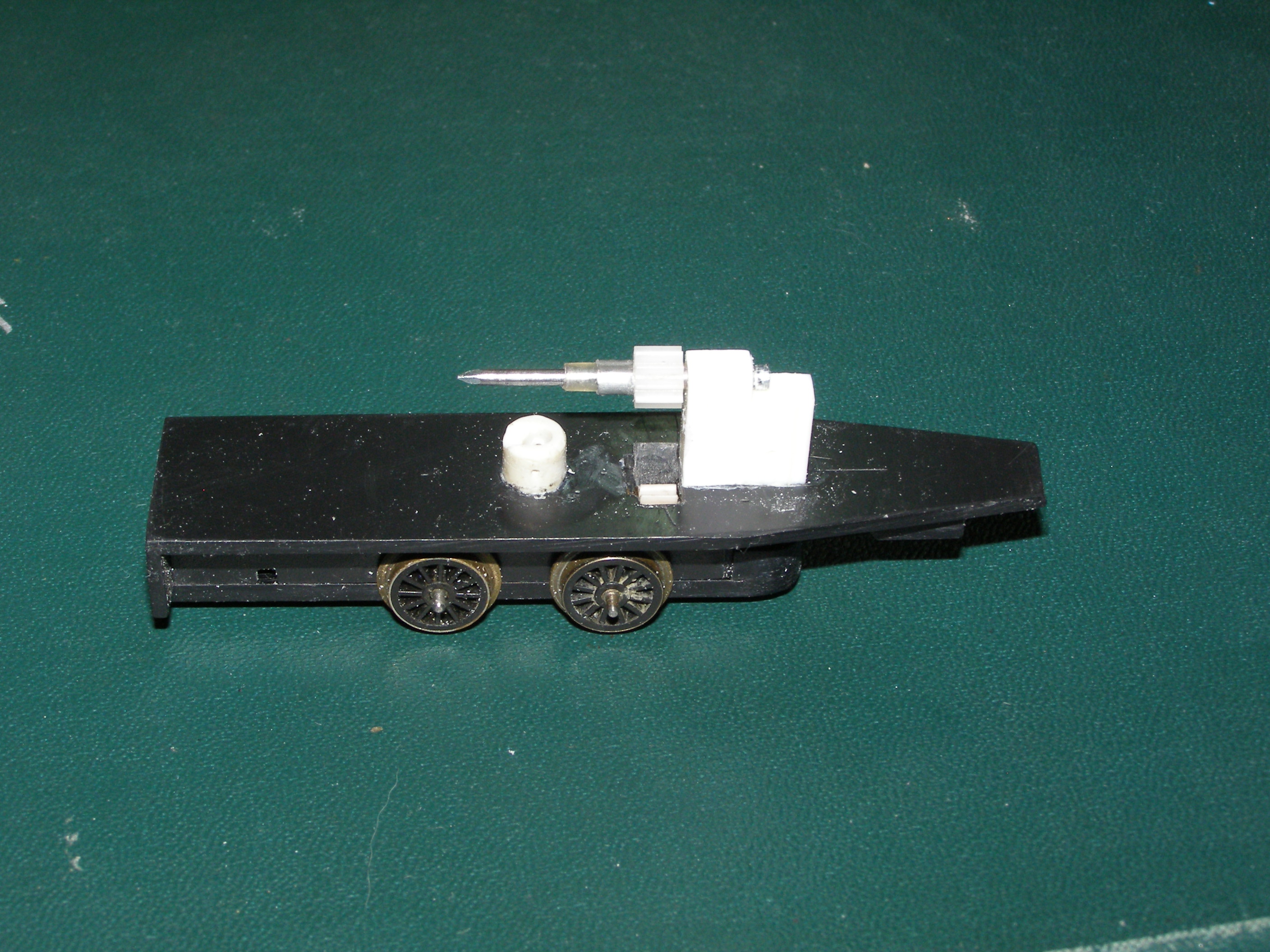 Чтобы не переделывать тележки решил сделать еще одну, но с червячным валом на три колесных пары. Тележку склеил точно такую же. Поставил на нее имеющийся редуктор. На червячный вал добавил еще одного червяка на валу соединив их кусочком стержня от ручки. В тележке соответственно установил гнезда под подшипники уже под удлиненный вал и крепление для крышки. тяговые колеса сделал из оставшихся от локомотива Siku - они там по фактуре спицованные и по размерам подошли,немного их обточил под резиновое колечко, взятое от резиновой вставки на шариковой ручке. Вот и получилось 3,5 ходовых.