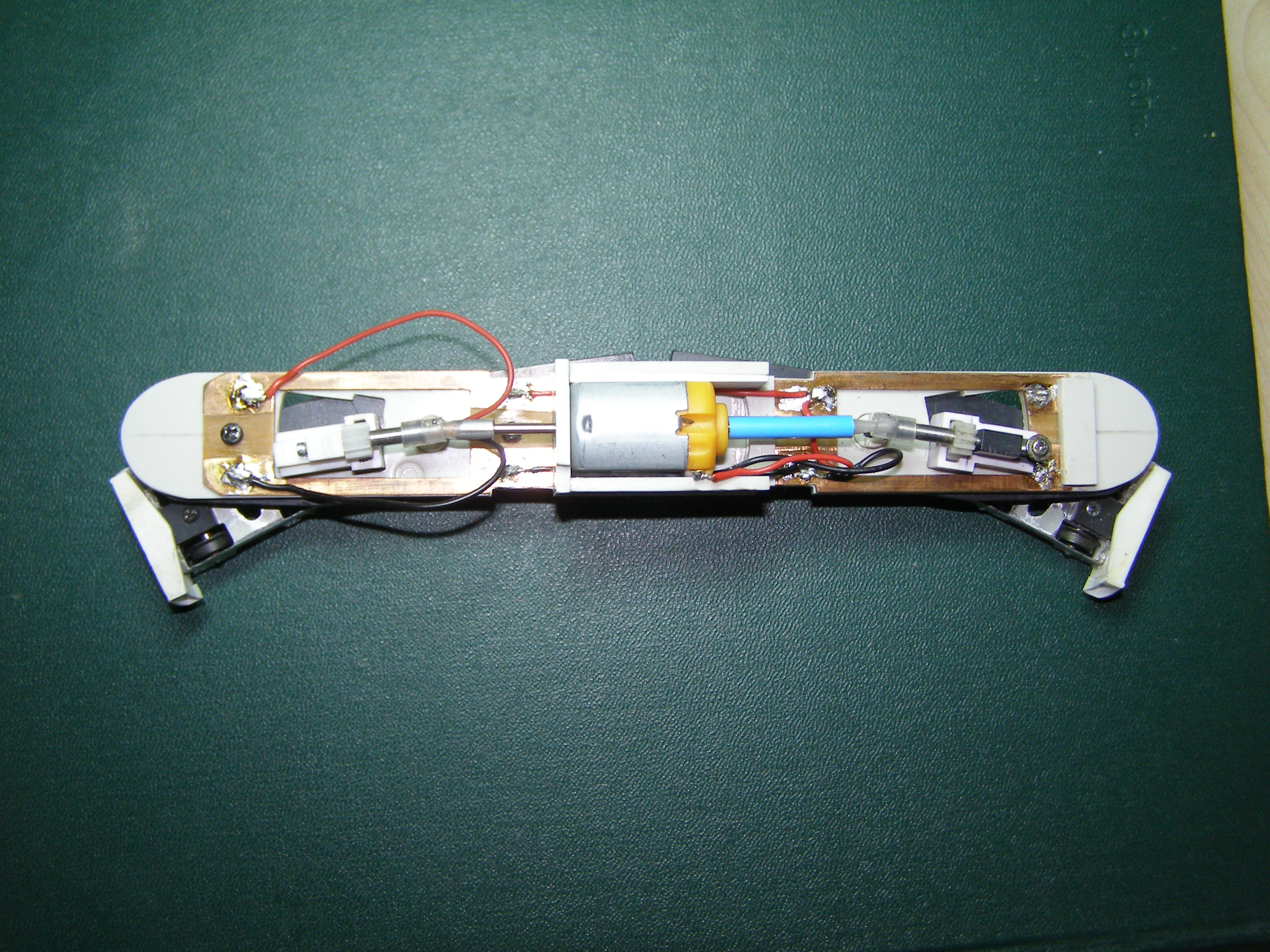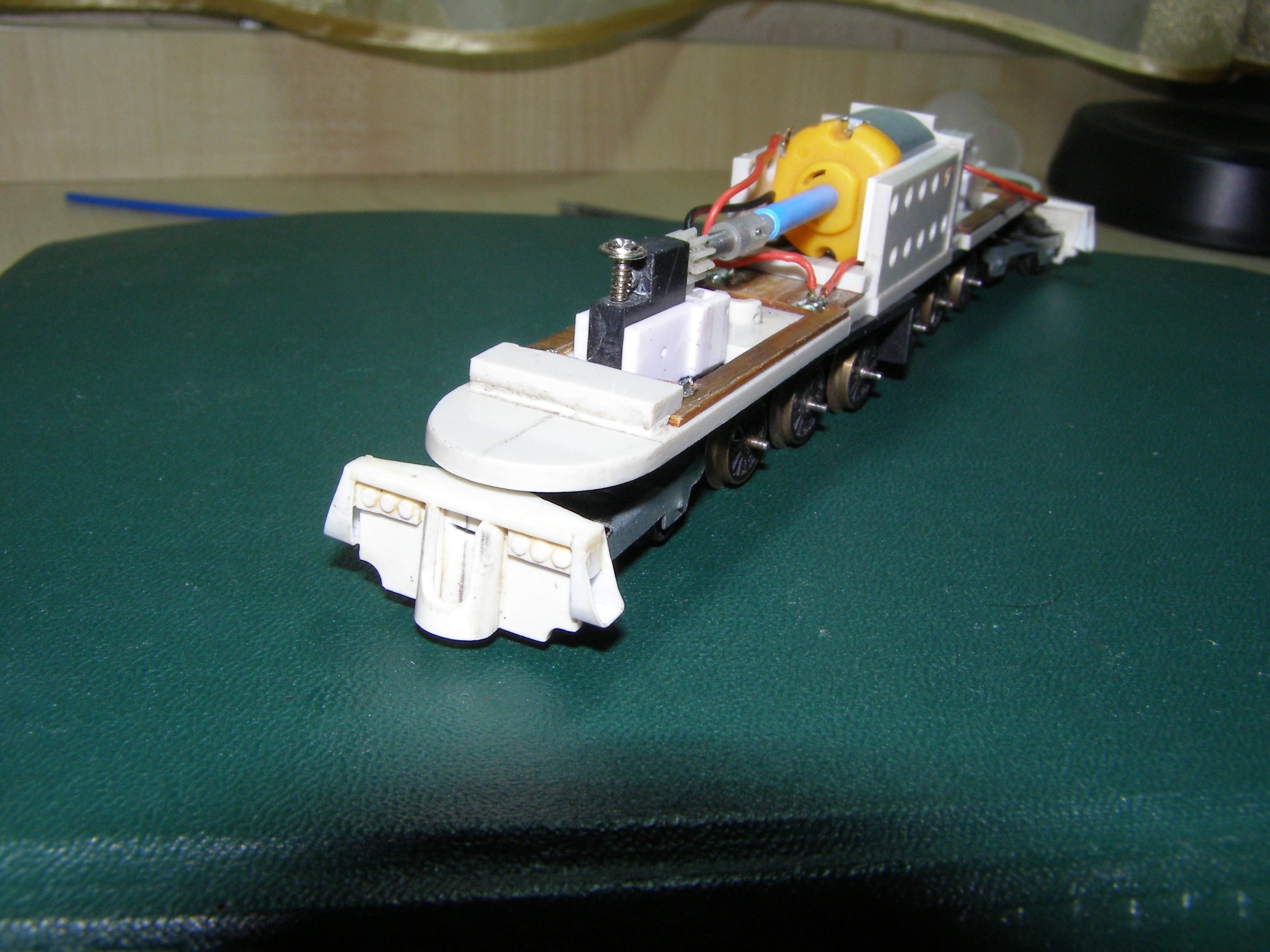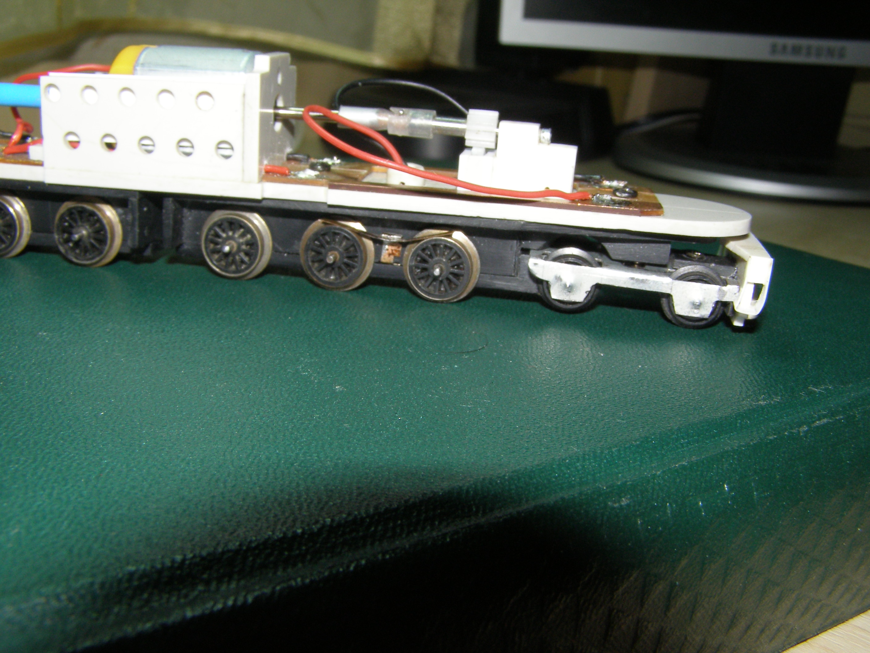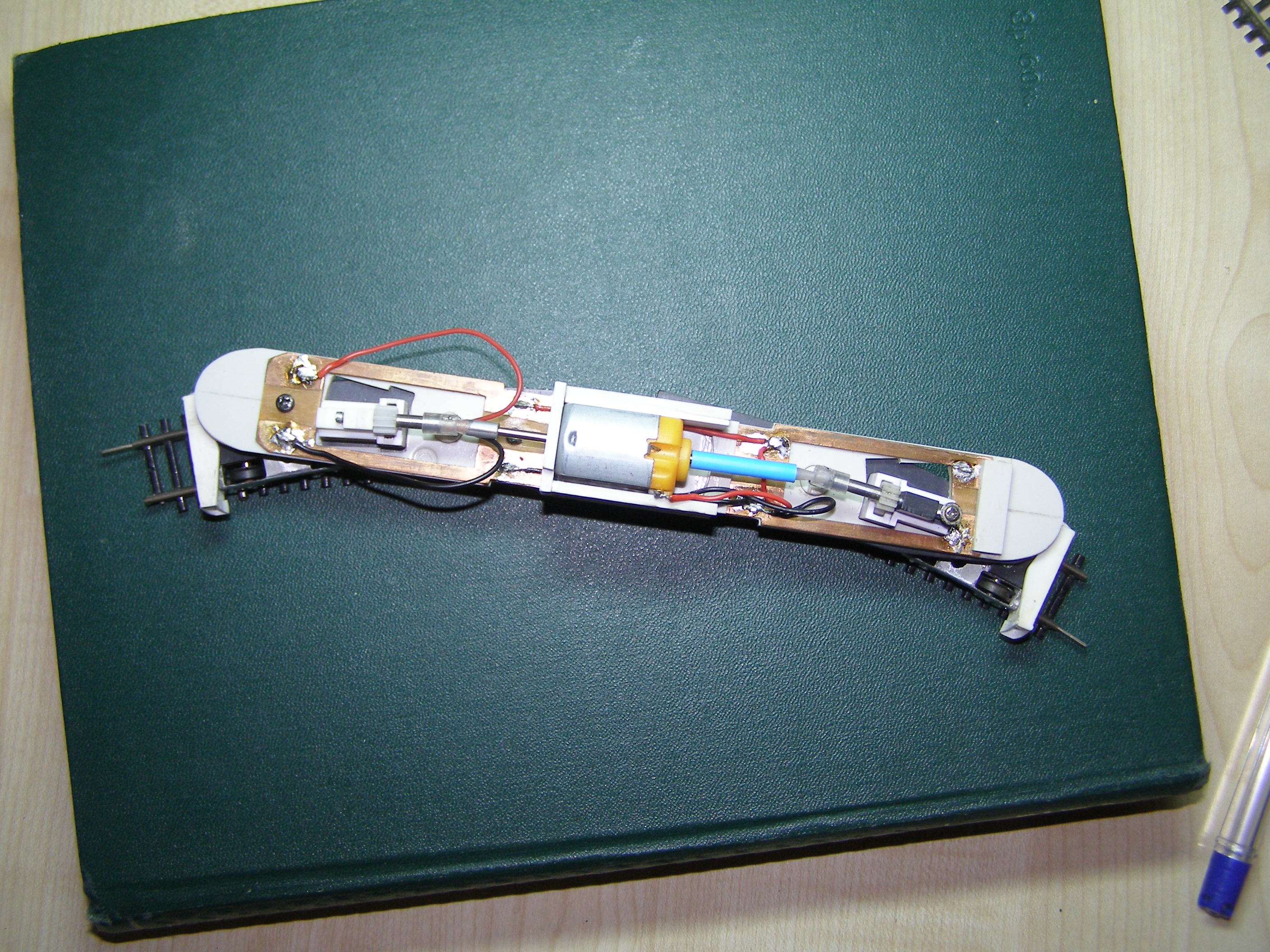 Как я говорил это был третий вариант. Когда это все собрал, покатал по рельсам понял одну ошибку - надо было делать все колесные пары ведущими и по одной в каждой тележке с резиновым кольцом на ободе. Короче не хватало тяги. Да и мотор использовал не тот что планировал. Хотел поставить вот этот