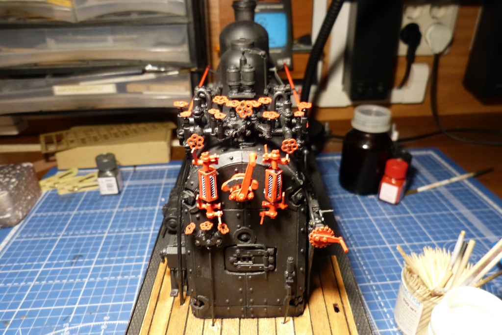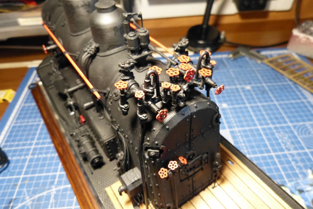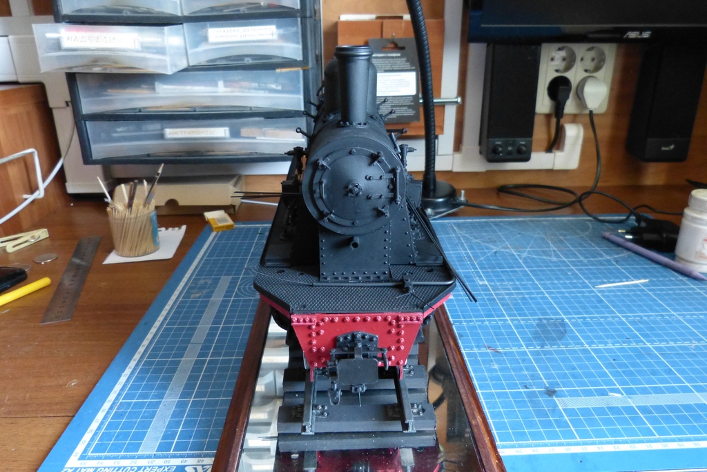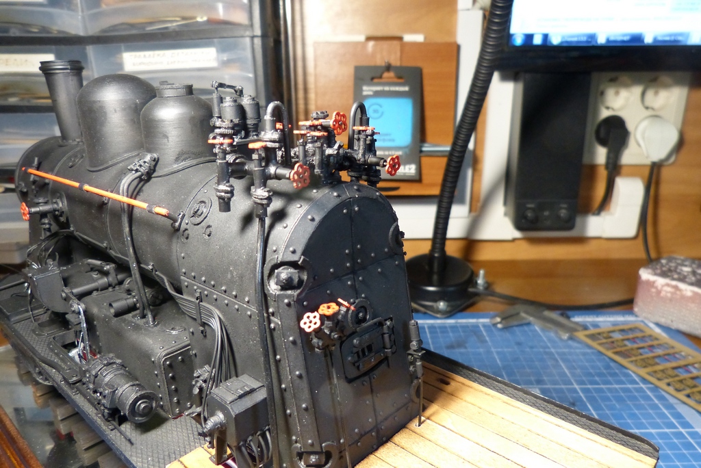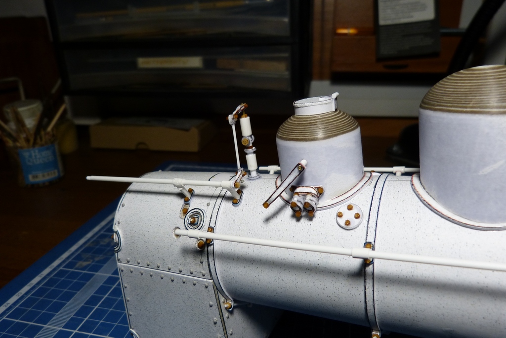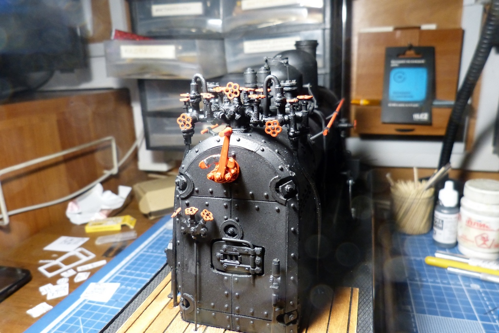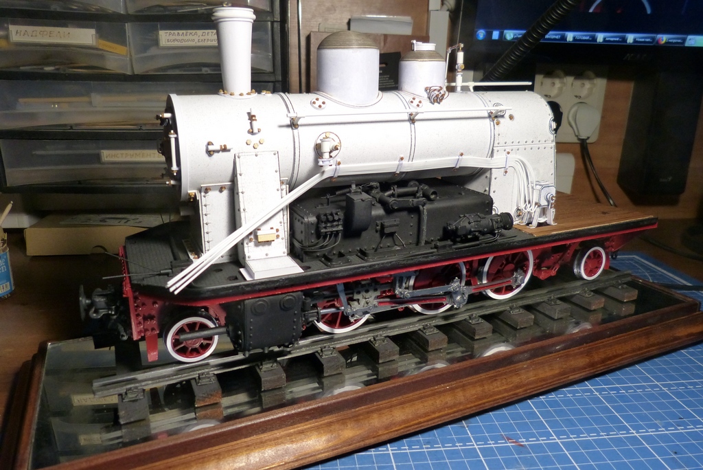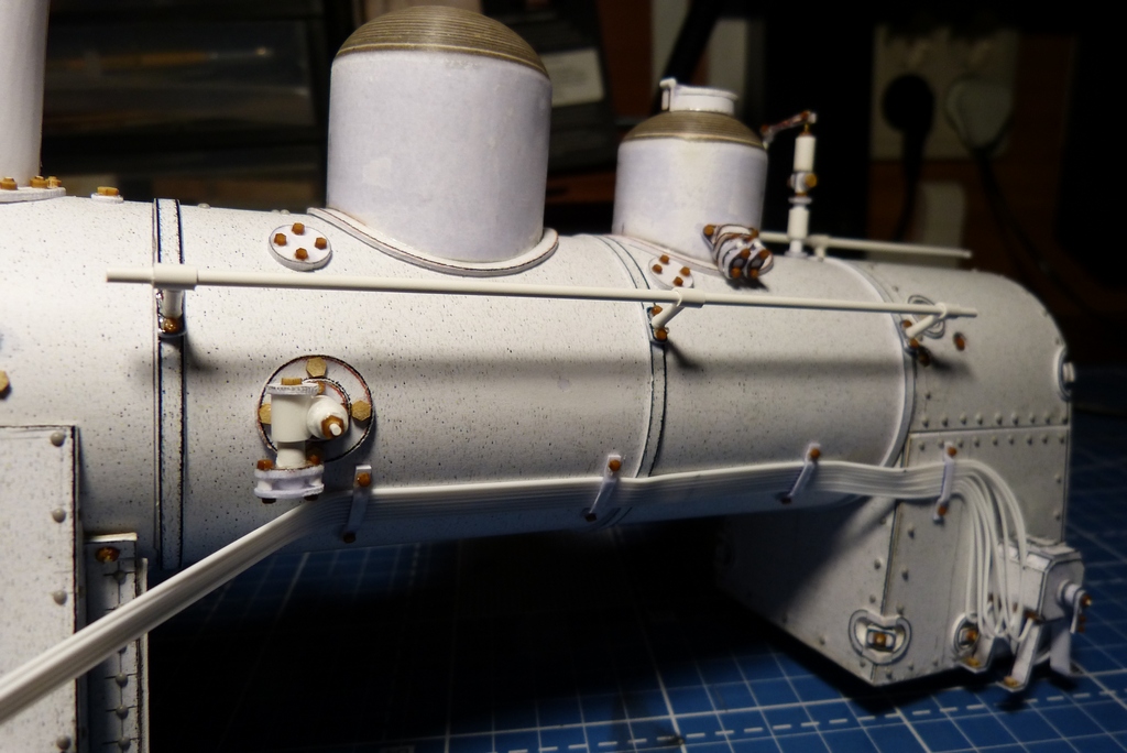 Ну вот с котлом закончено,поставлены поручни,свисток с механизацией и рычаг сухопарника