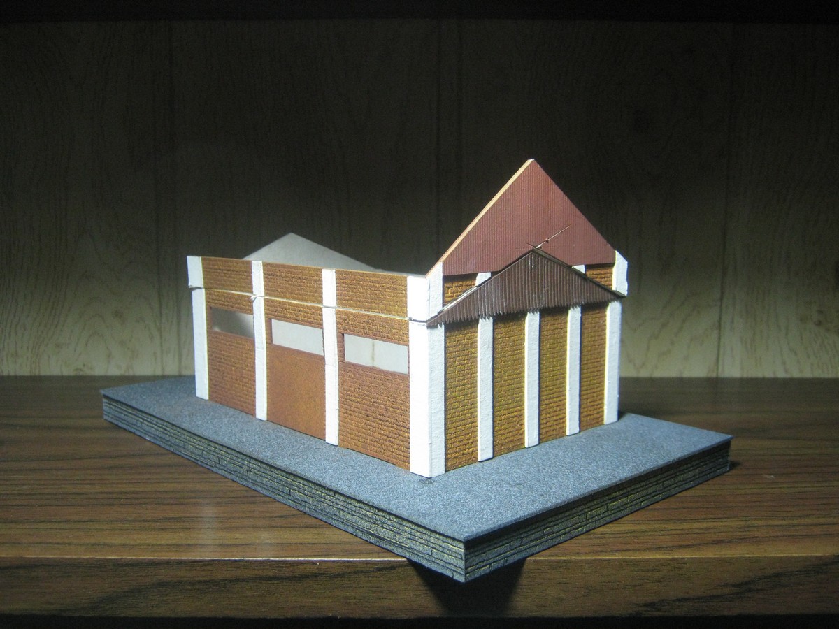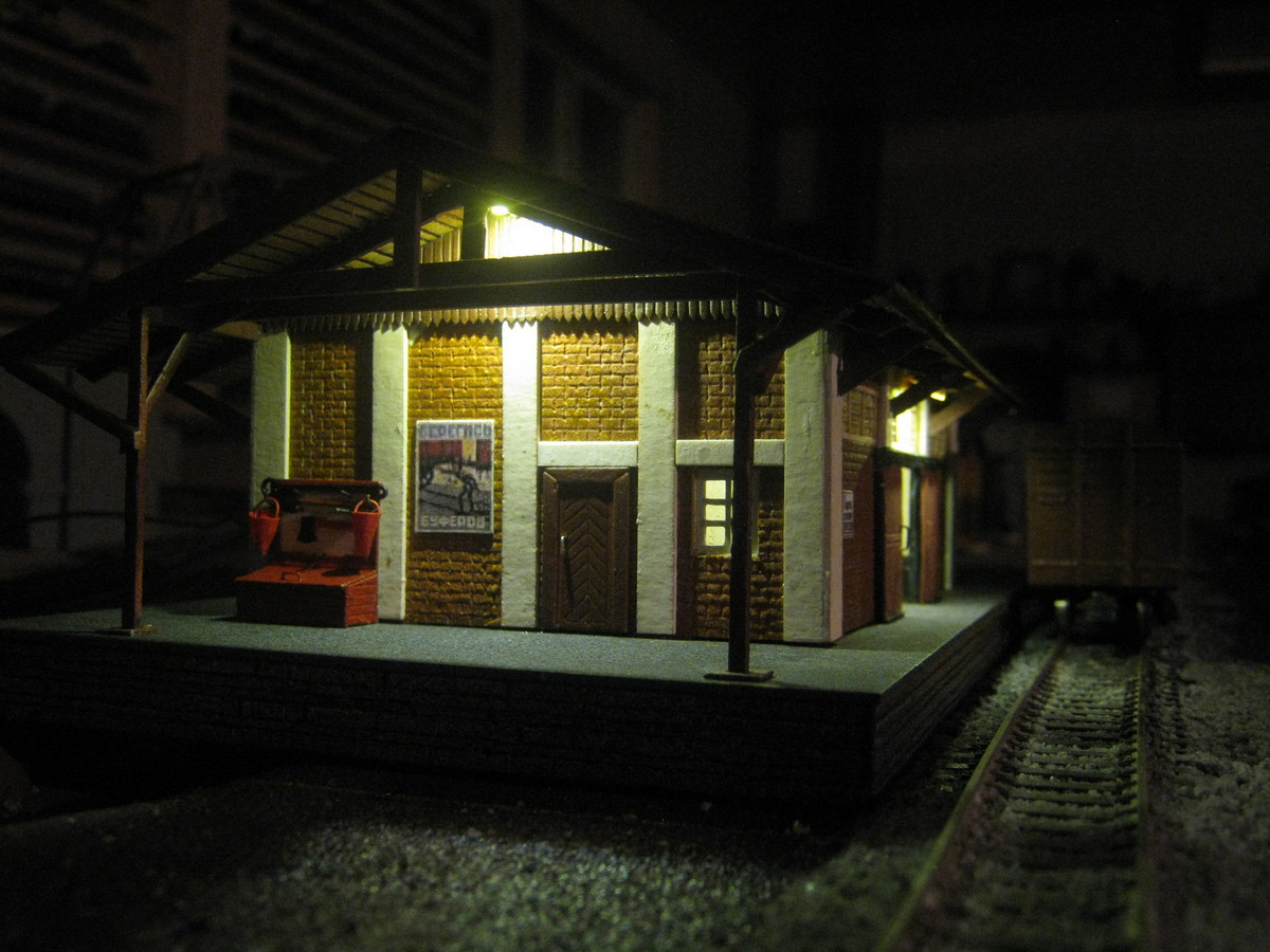 Есть фотография, где хорошо видно, насколько обрезал крышу. К Вам, Артём, претензий никаких. Просто я привык, что пакгауз обычно имеет более пологую крышу. Это было уже сугубо моё видение, но все габариты выдержал в соответствии с нормами.