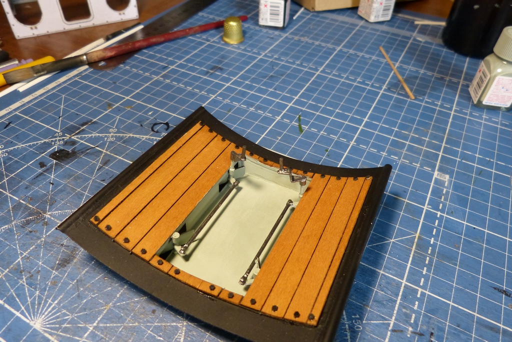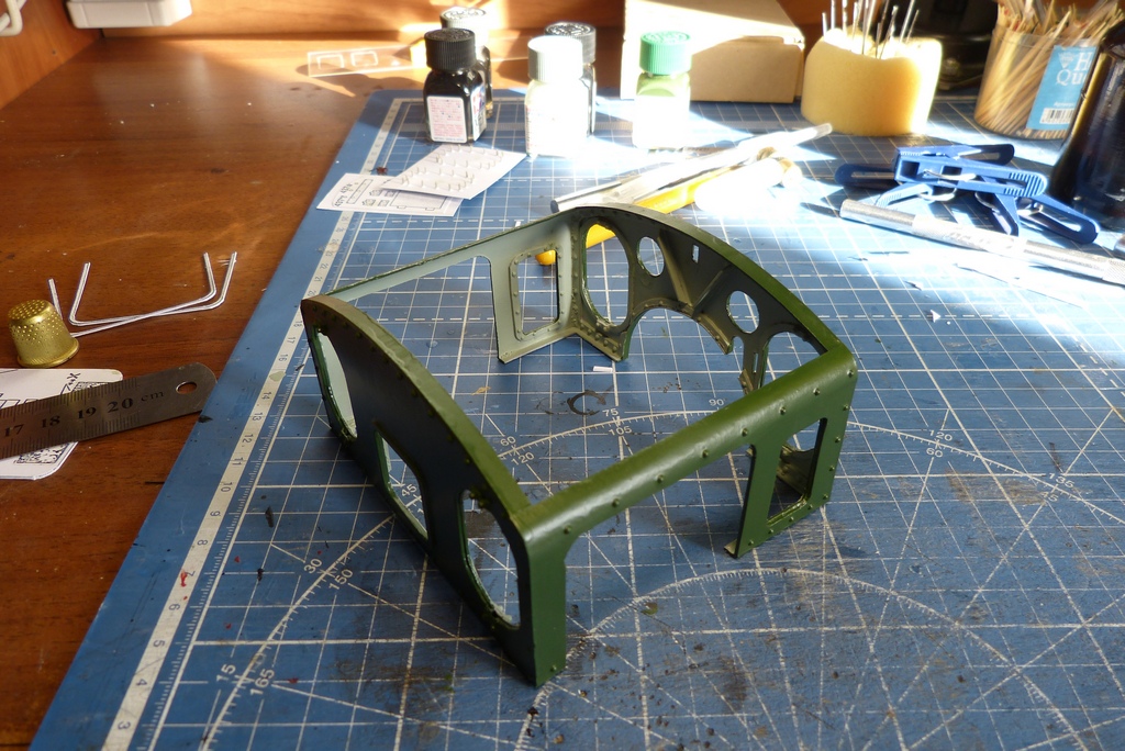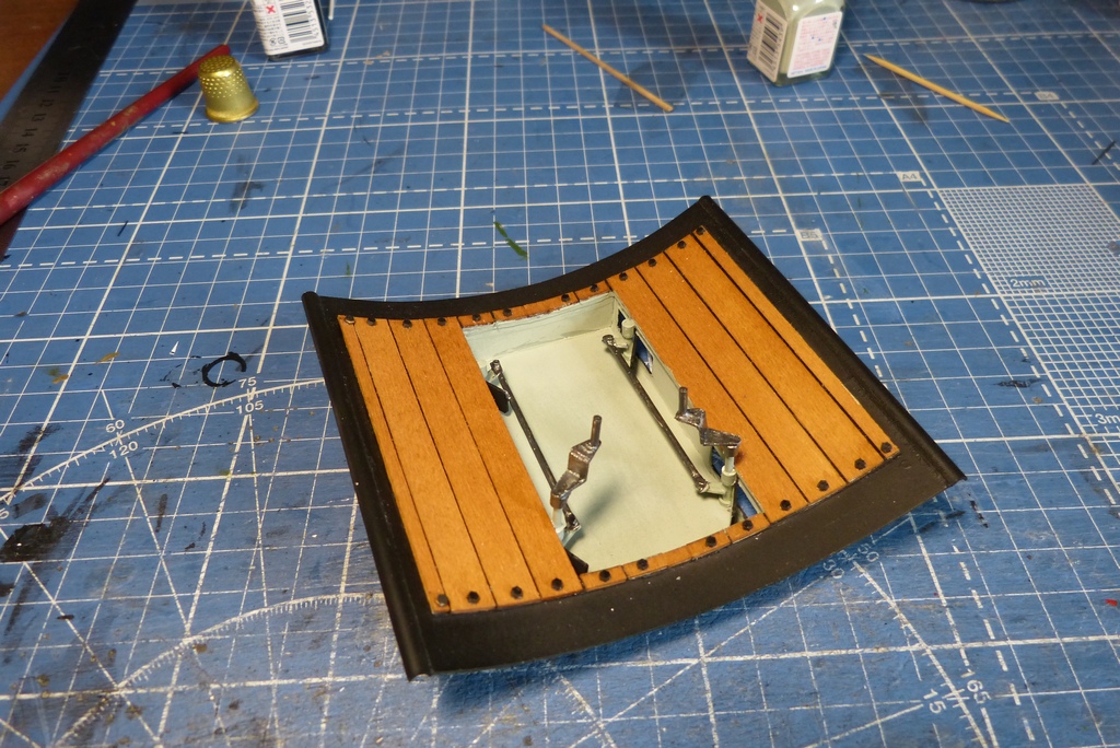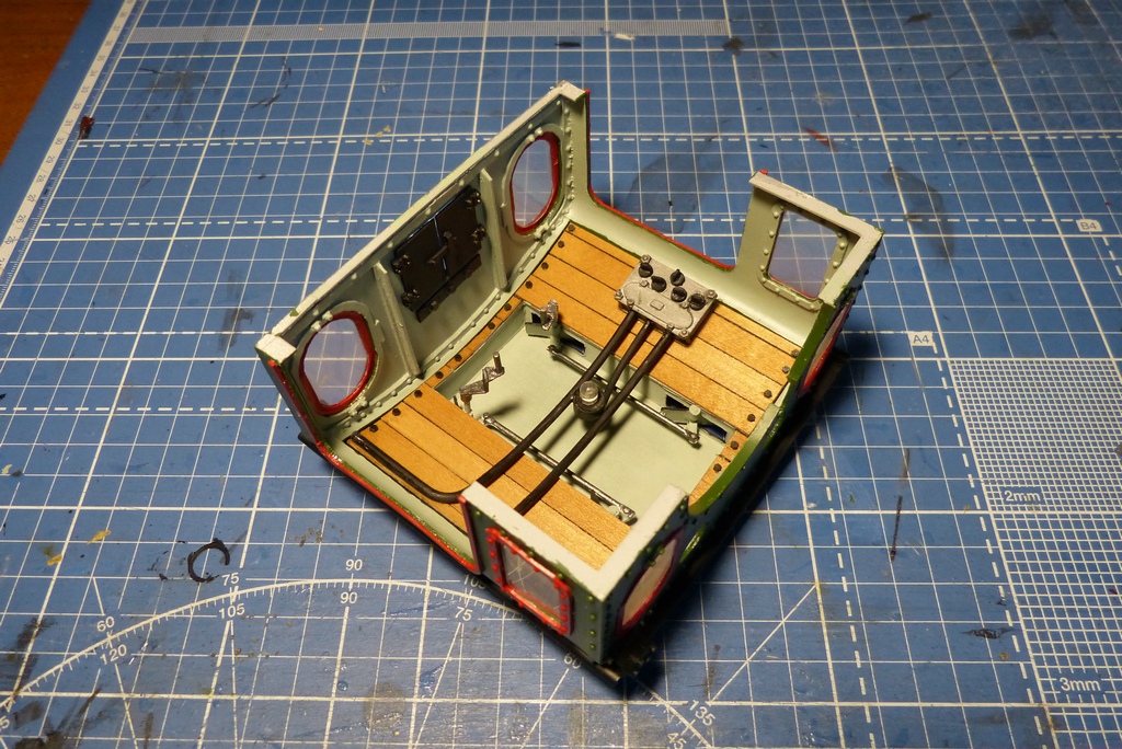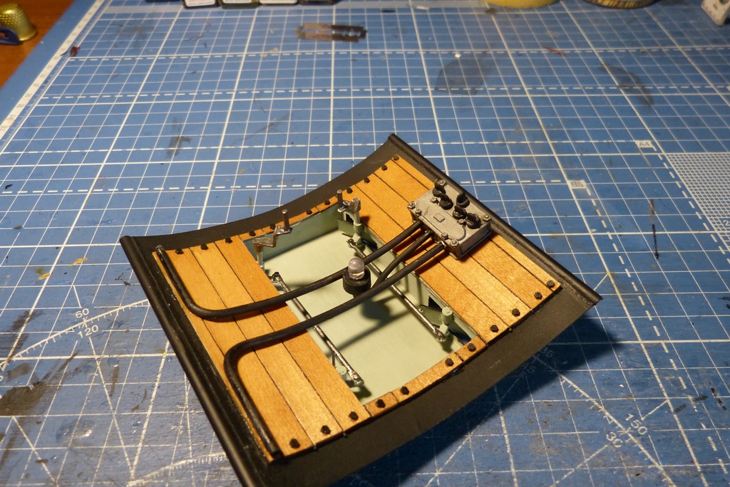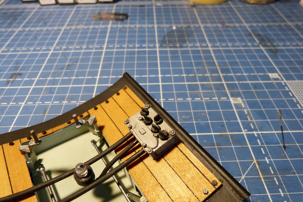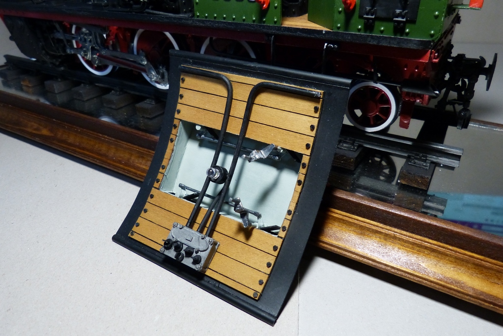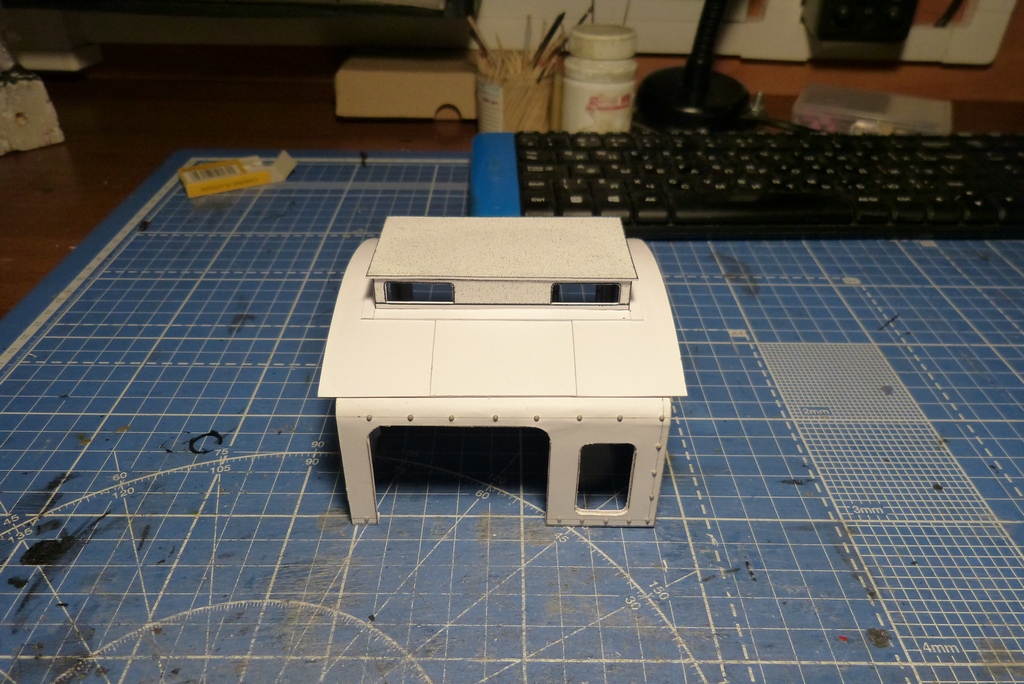 Установлен верх будки,будка машиниста готова,осталось две трубки от распредкоробок,две трубки с клапанами от вентелей на котле к пароразборной каропке,рычаг свистка,тяга к сухопарнику и таблички с надписями