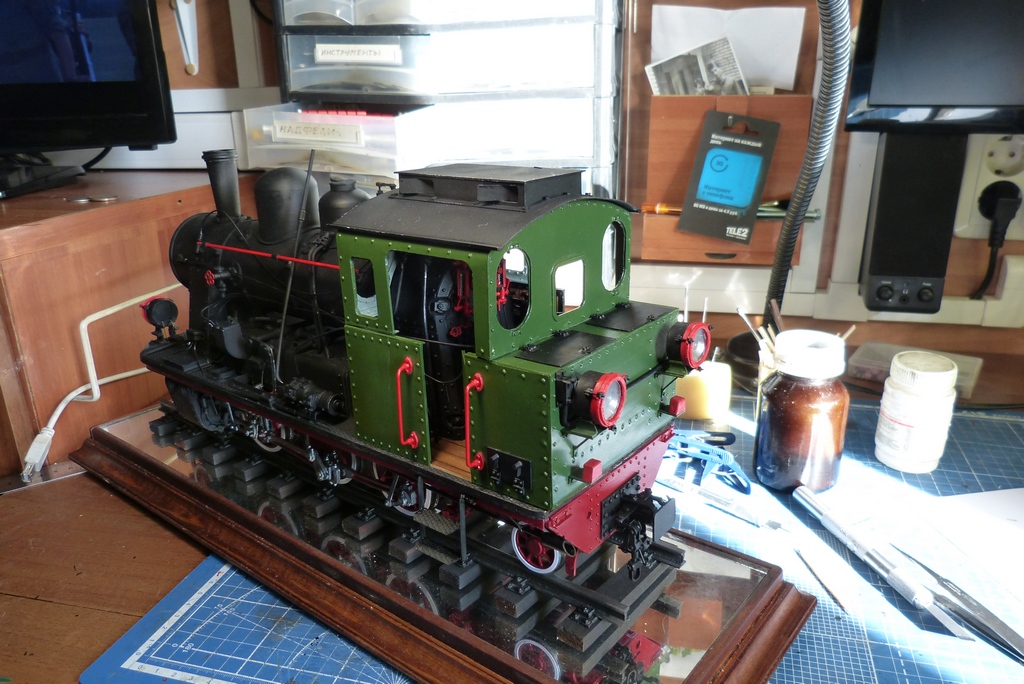 Установлены последние трубки,две к электрокоробкам и две от вентилей котла к пароразборной коробке на топке.Остались таблички и надписи на борта будки.Ну и общий вид