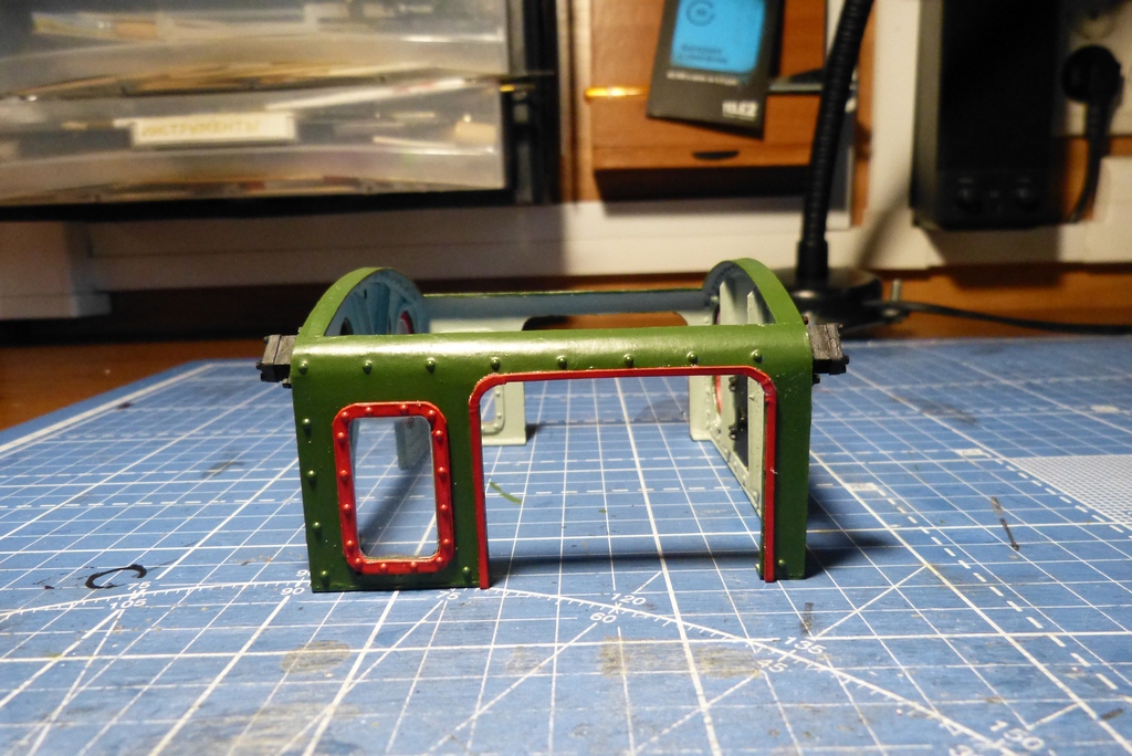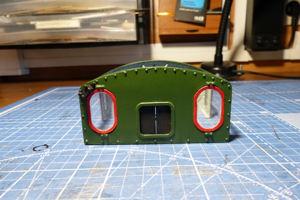 Поставил крепления поворотных штивтов на окнах,ребрышки на переднюю и заднюю стенку, окантовки окон внутри,окантовка снизу