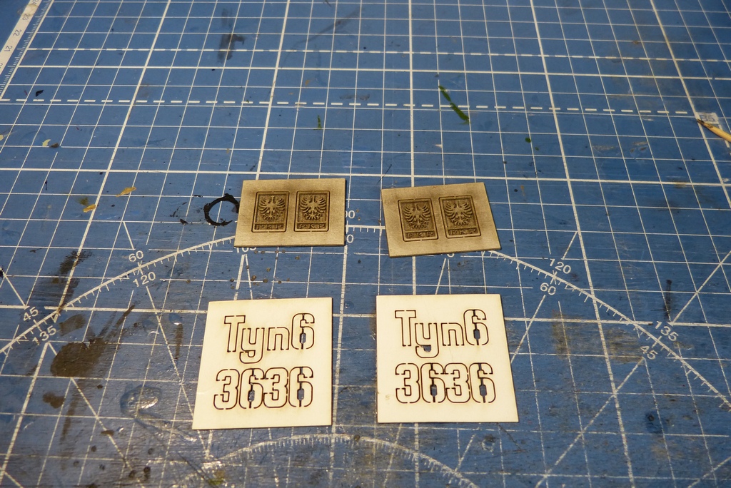 пластиковые трубки Evergreen , смоляные заклепки от Мастер Клуб , лазерная резка болтов и цифр , гравированные лазером настилы,подножки и таблички.