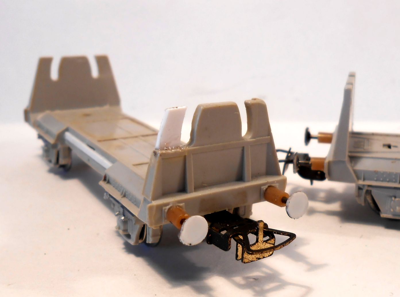 Немного долепил остальные вагоны и подготовил под покрас.Один вагон будет концевым.