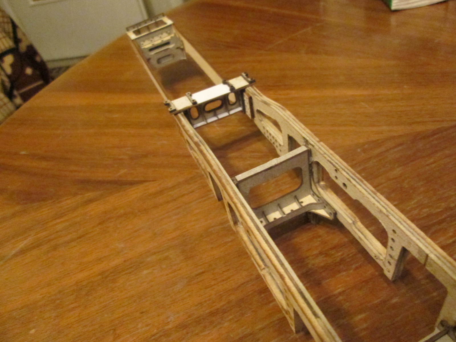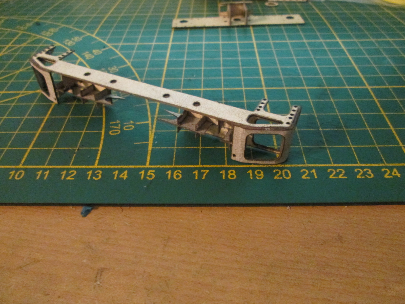 Теперь я,сделал два межрамных креплени,шкворень передней тележки с креплением и установил на рамный лист