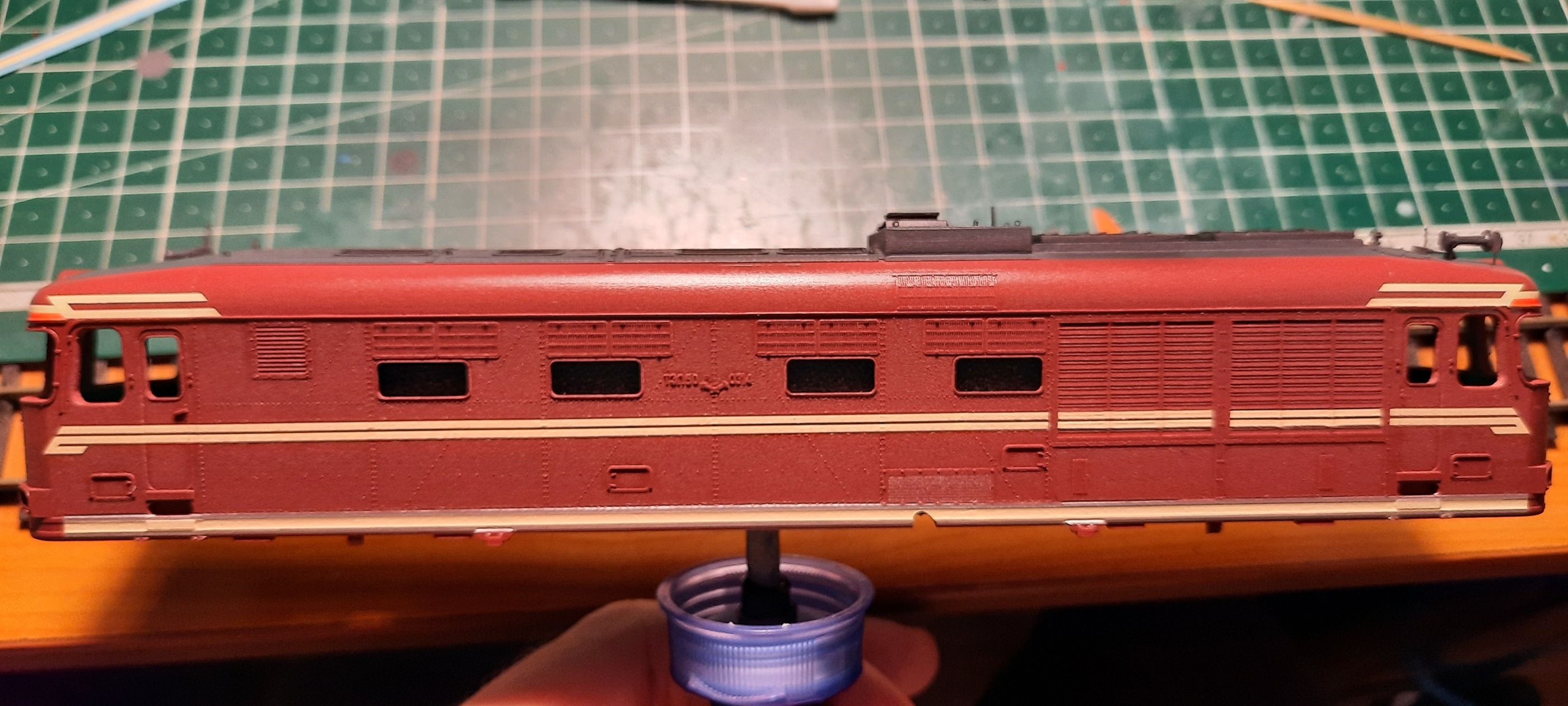 Декали на четвёртом кузове ТЭП60 уже наносятся увереннее, чем раньше, и я уже не боюсь, что можно запороть предыдущие процессы. Яркий настольный свет просто извращает цвет на фото.